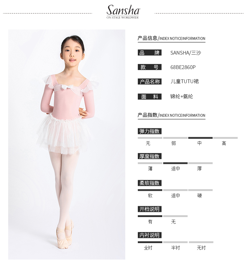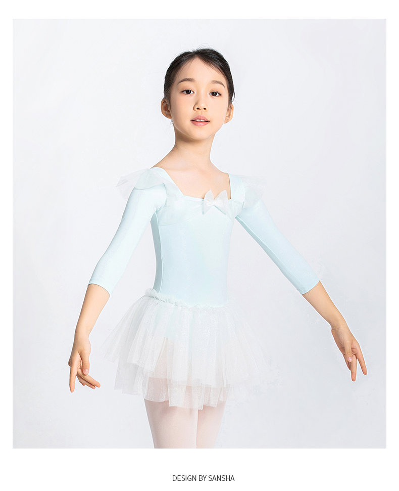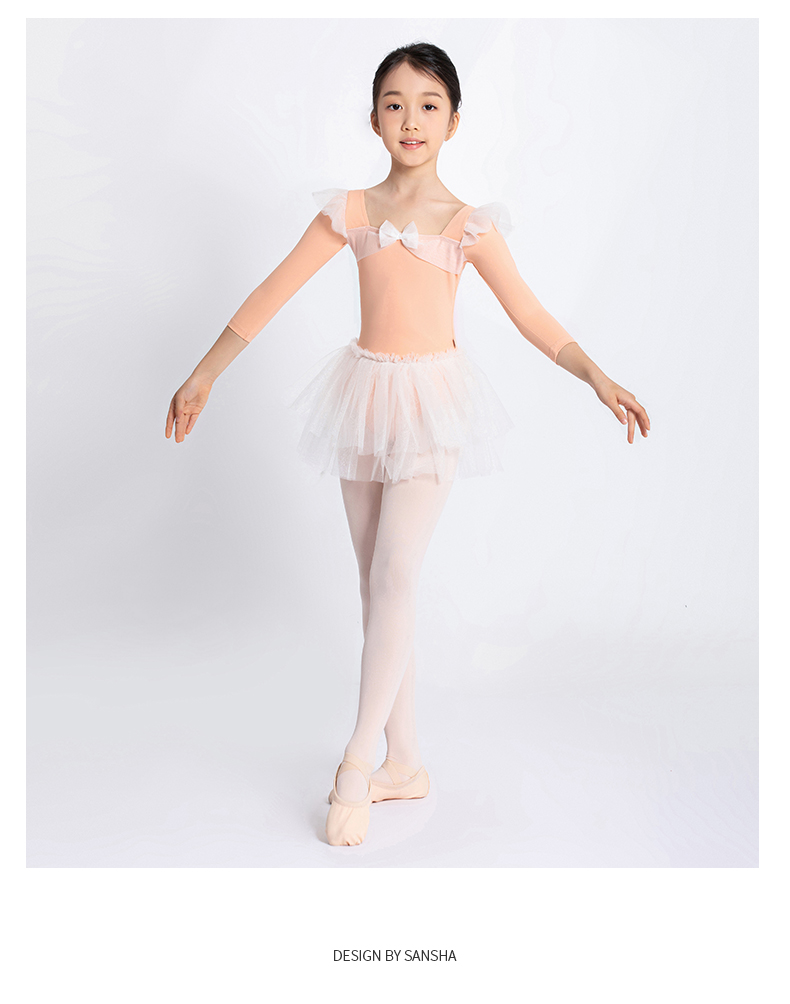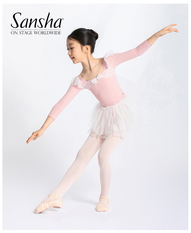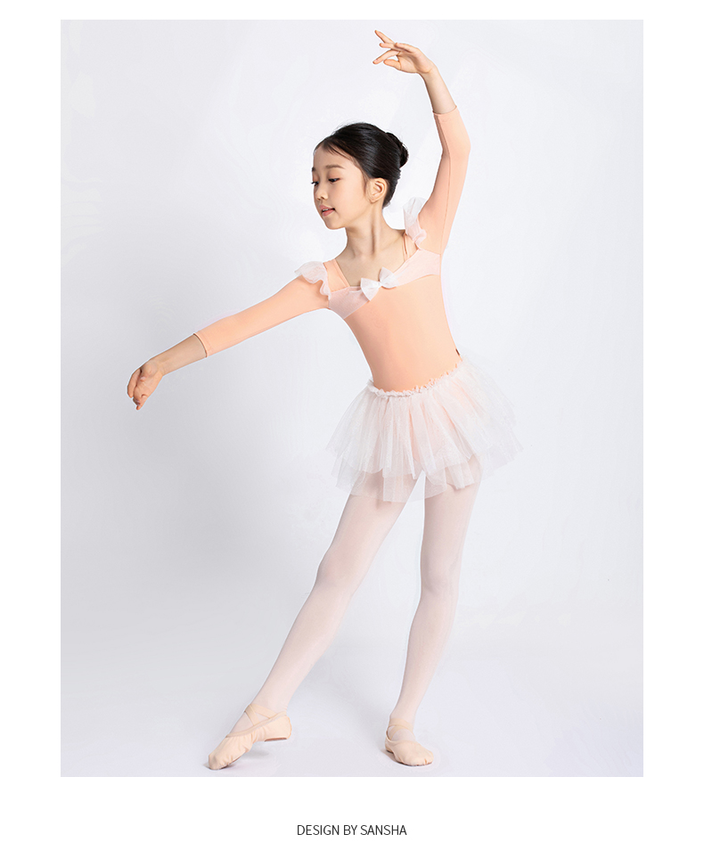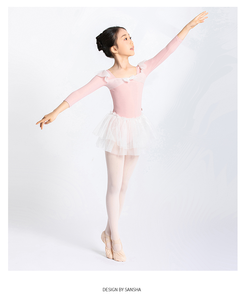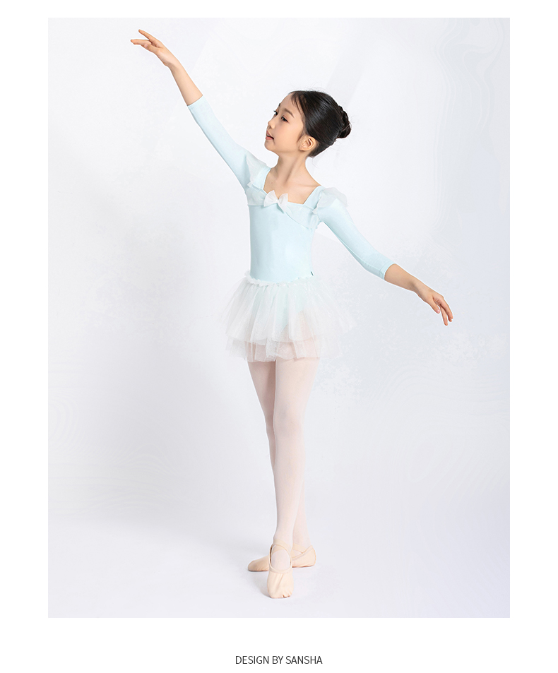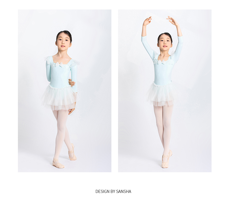sansha 三沙儿童长袖舞蹈服女 秋冬芭蕾舞练功服蓬蓬裙连体服表演