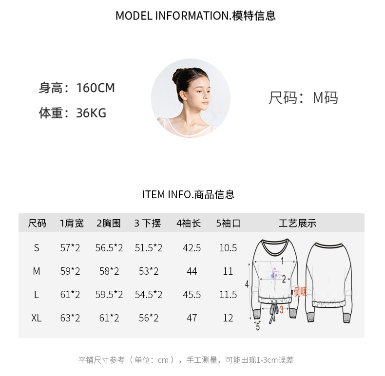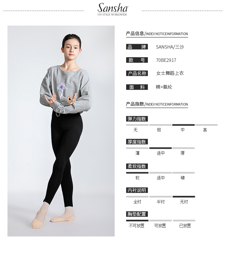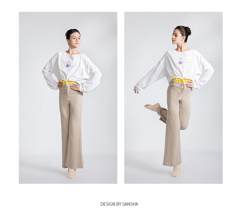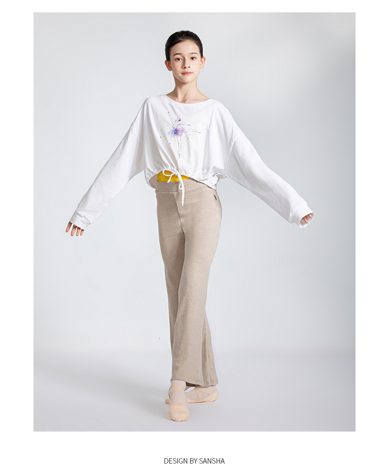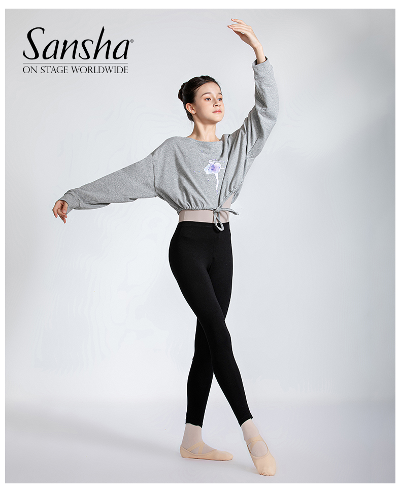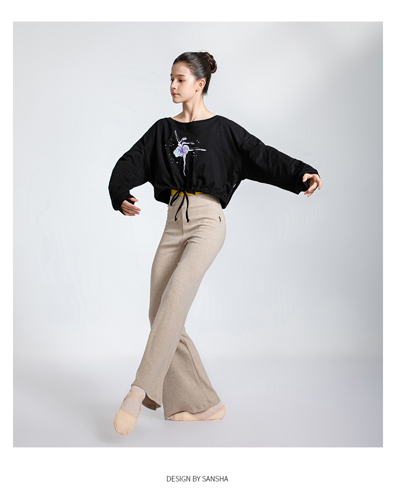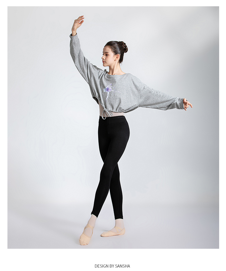 sansha 三沙舞蹈服女 现代舞练功服短款上衣蝙蝠袖芭蕾舞T恤长袖