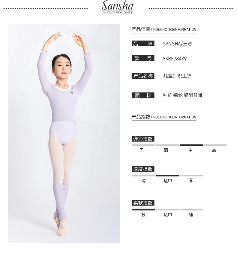 sansha 三沙儿童舞蹈毛衣 秋冬保暖上衣芭蕾舞长袖针织外套热身服