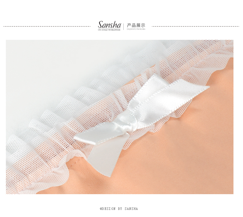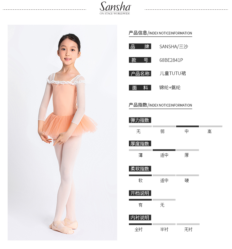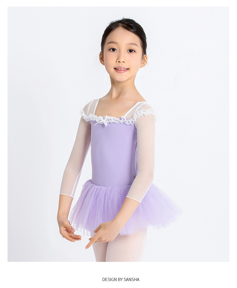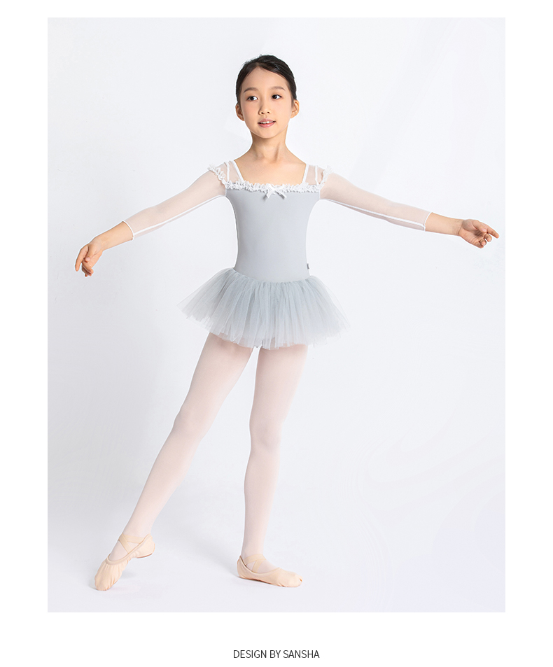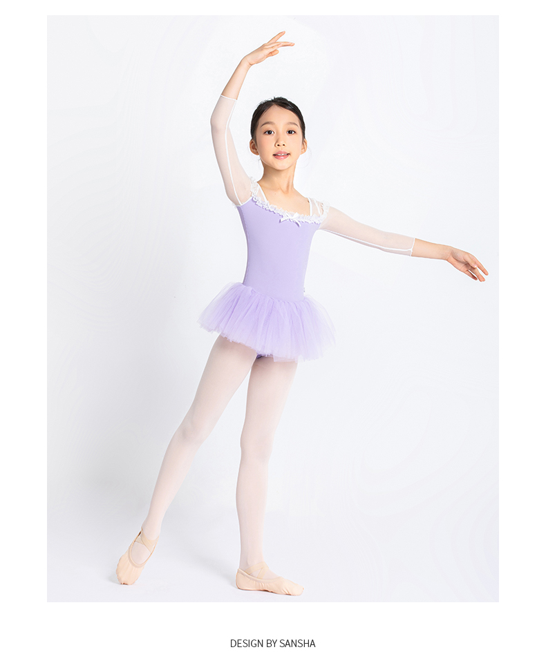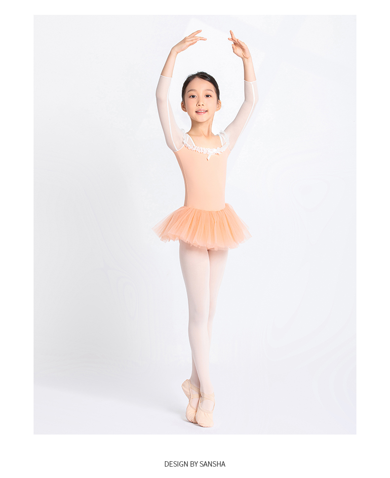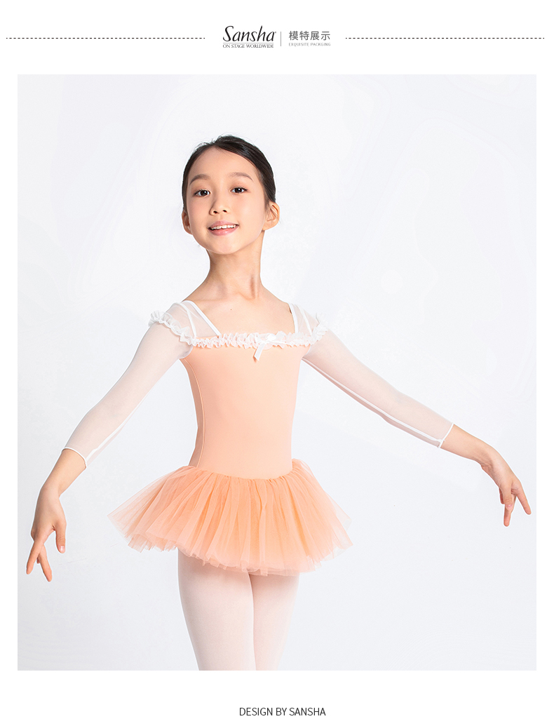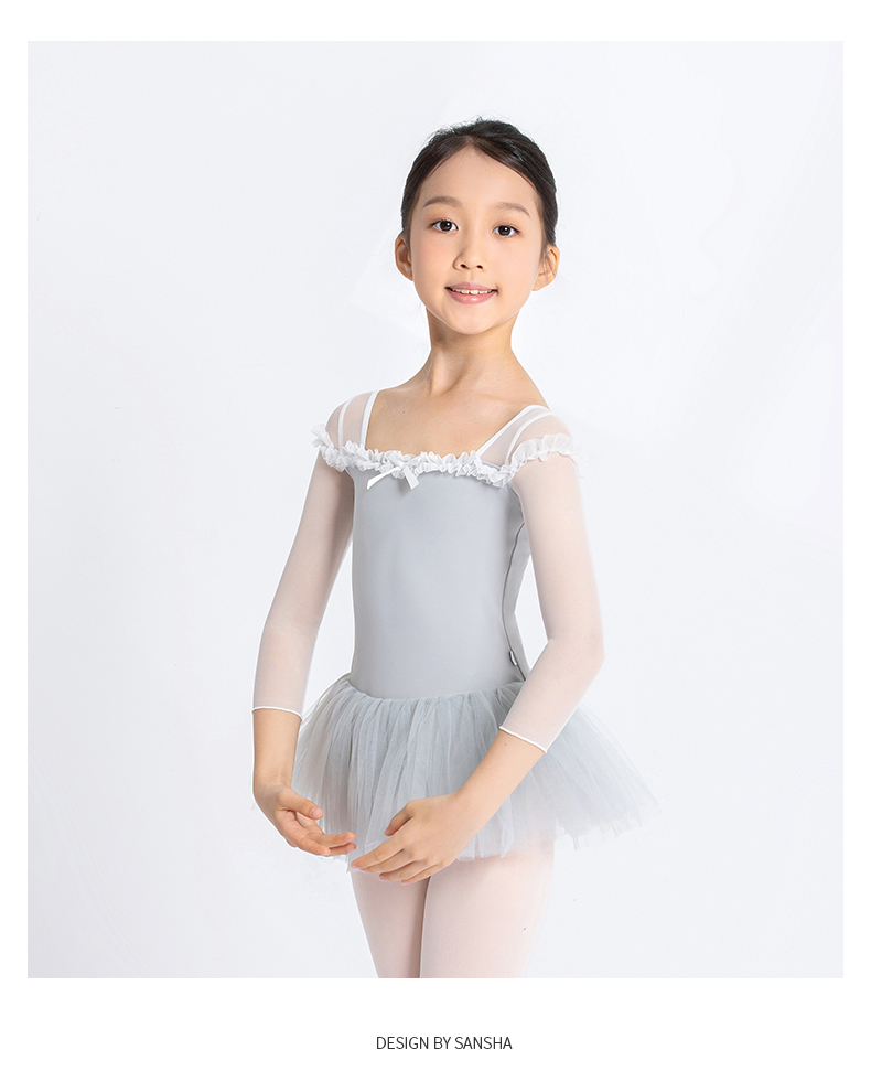 sansha三沙儿童舞蹈裙 开裆连体芭蕾舞练功蓬蓬裙网纱7分袖表演裙