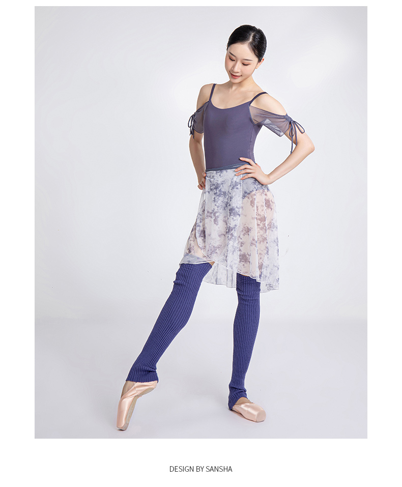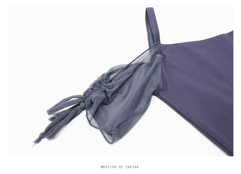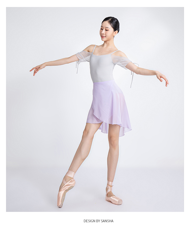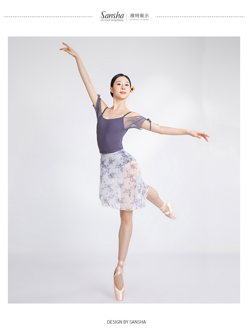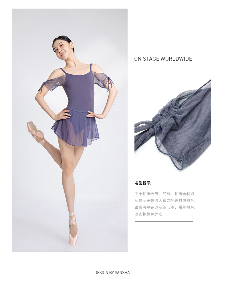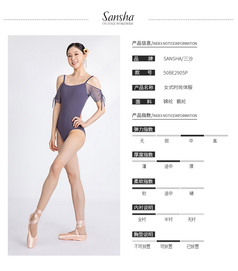 sansha 三沙芭蕾舞练功服女 吊带落肩袖舞蹈连体服表演弹力形体服