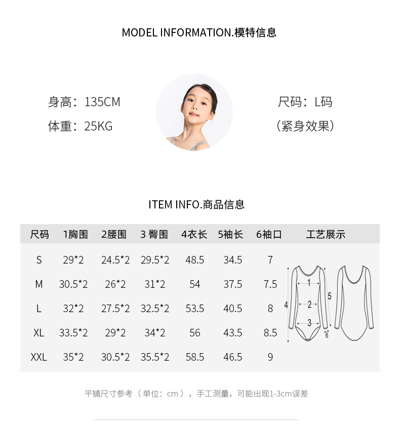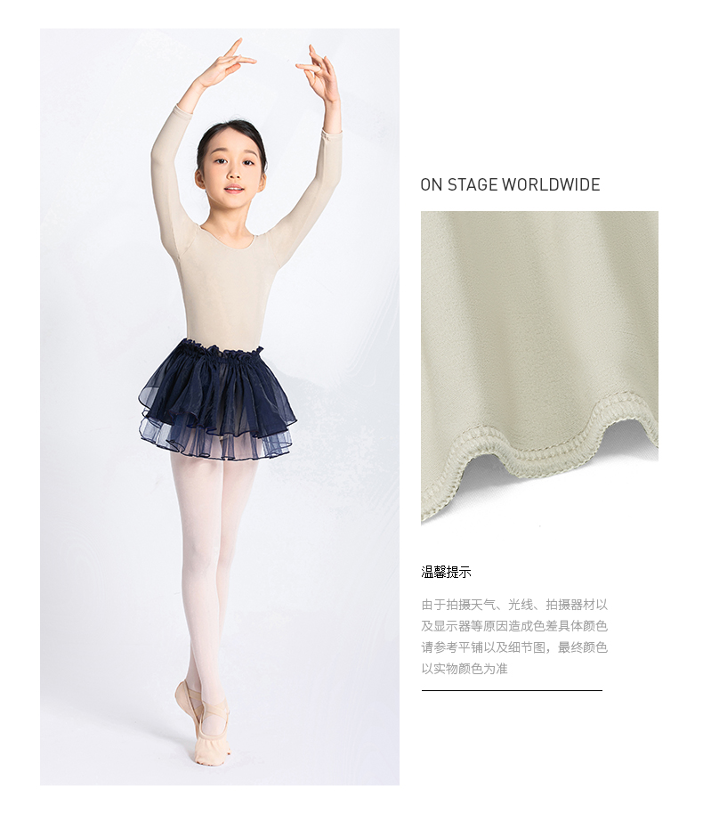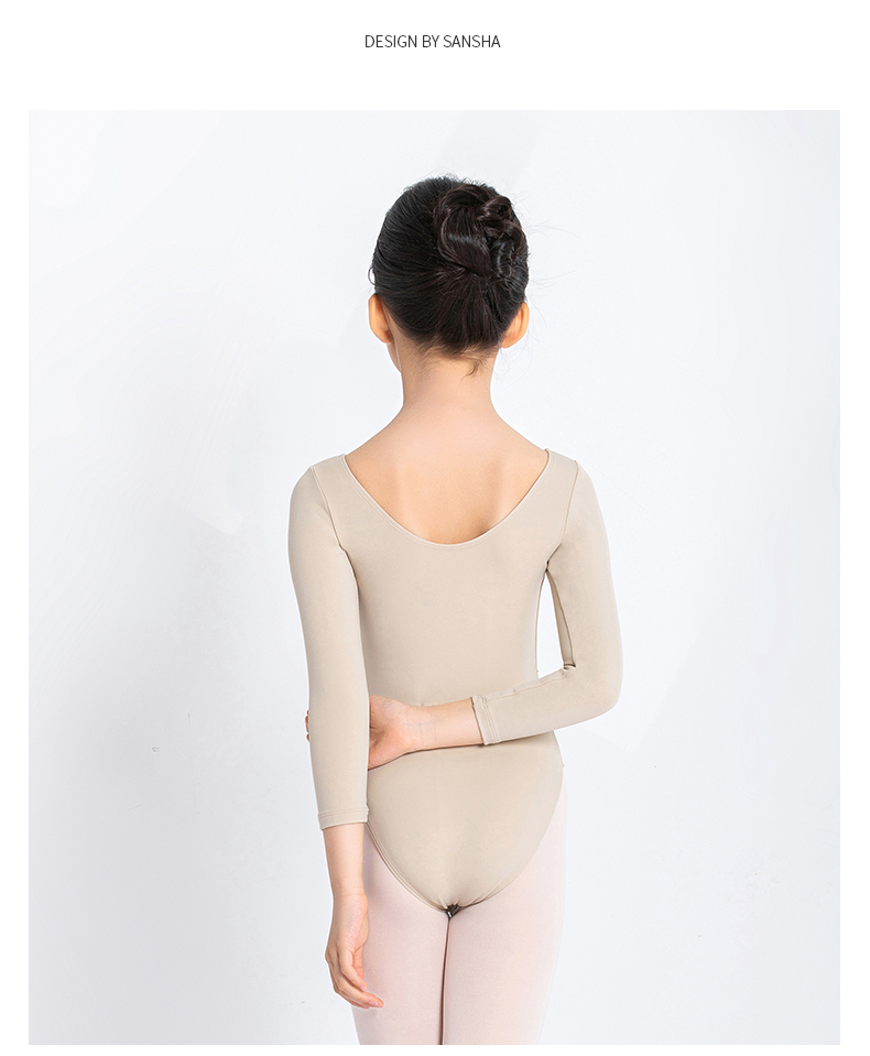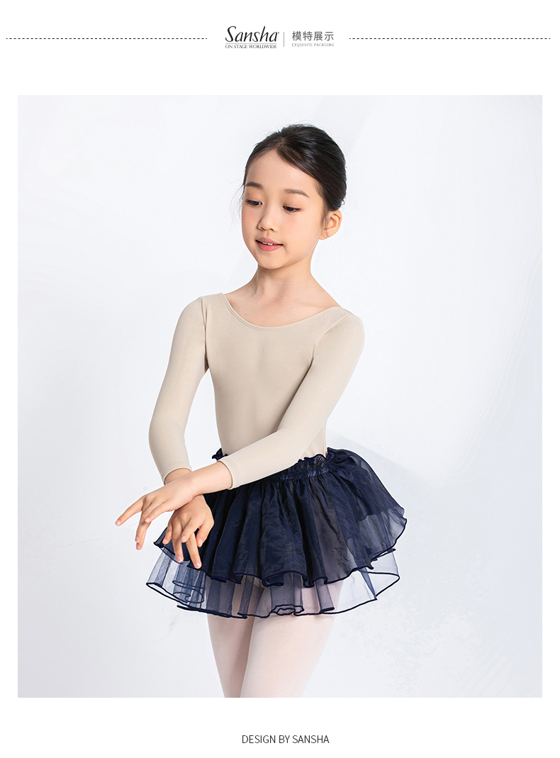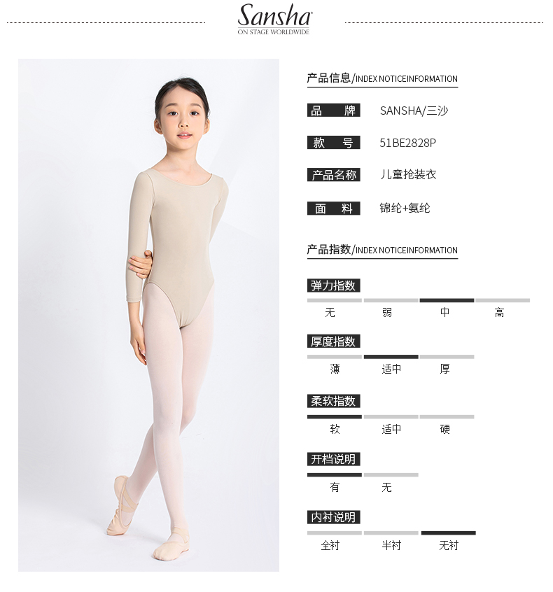 Sansha 三沙芭蕾舞抢装衣 儿童隐形肉色打底衣长袖舞蹈开裆连体服