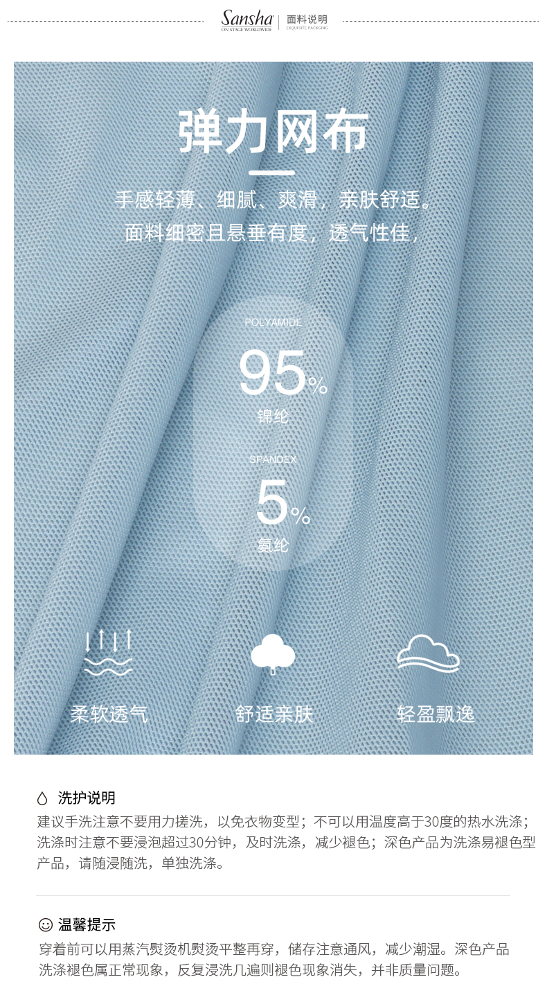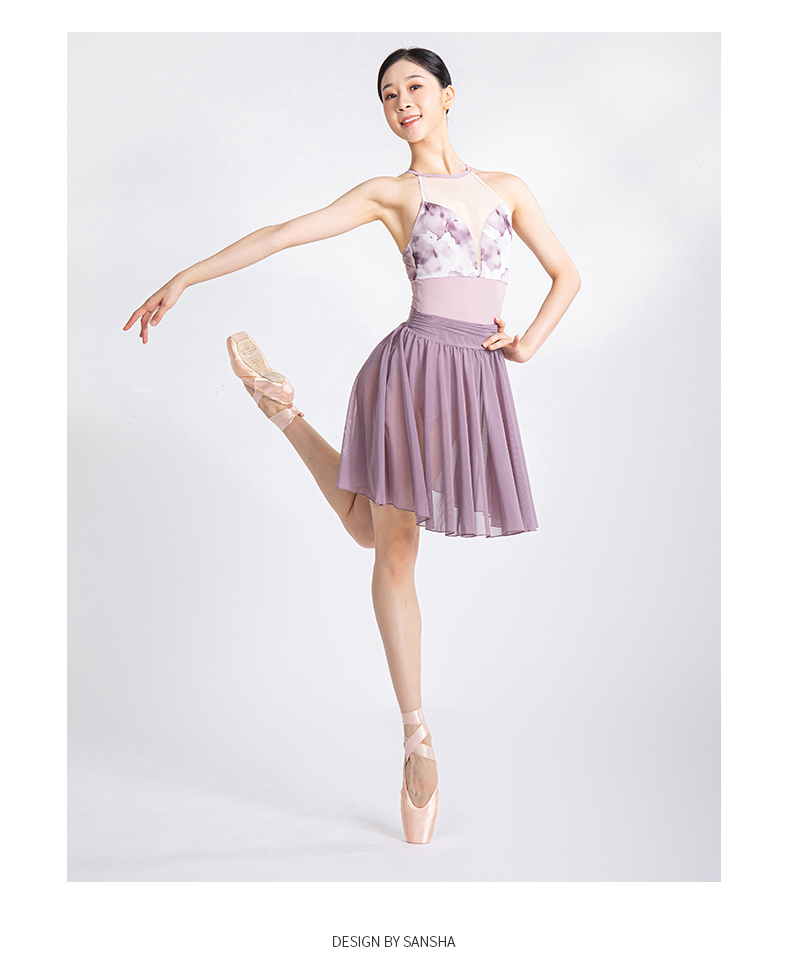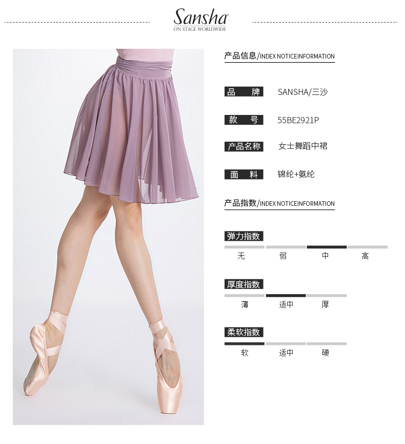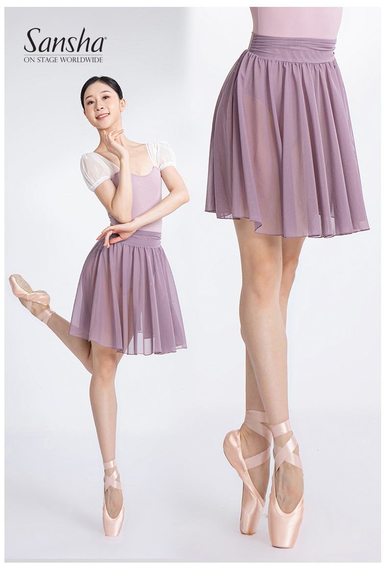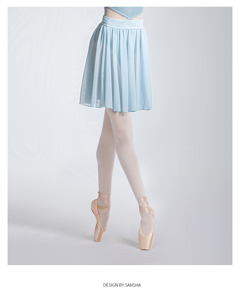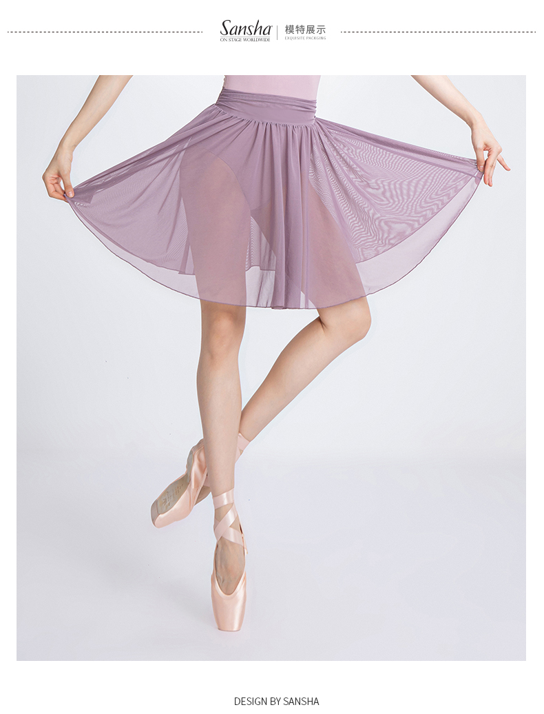 Sansha 三沙舞蹈裙女 芭蕾舞练功裙中裙弹力网纱半身裙短裙A字裙