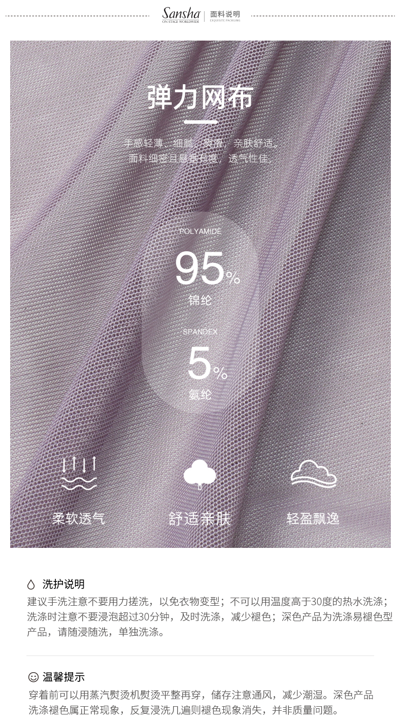 Sansha三沙舞蹈裙成人 芭蕾舞半身裙弹力网纱A字裙练功短裙中国舞