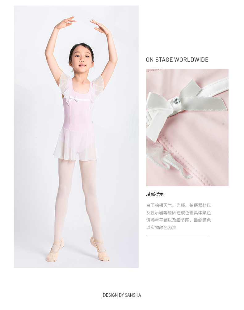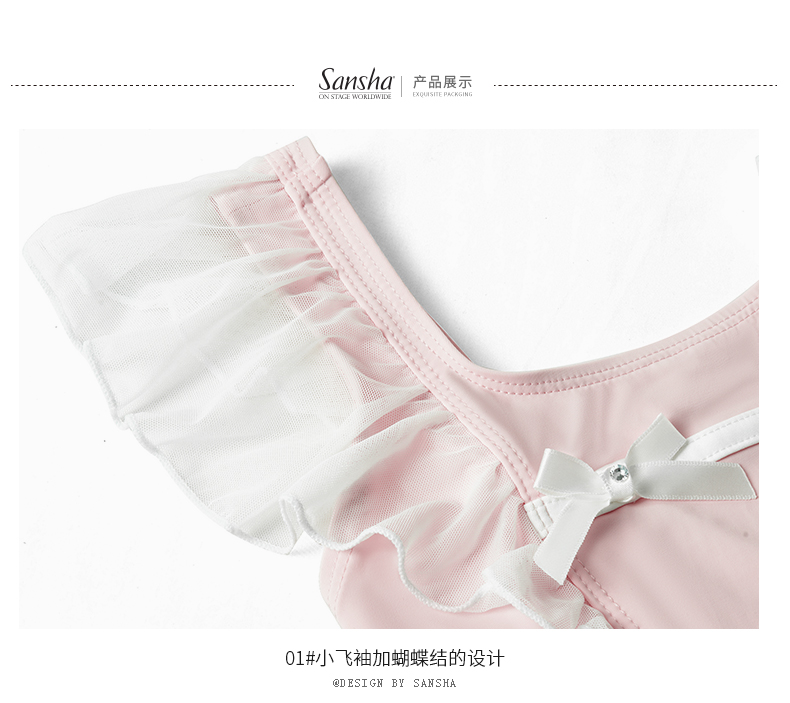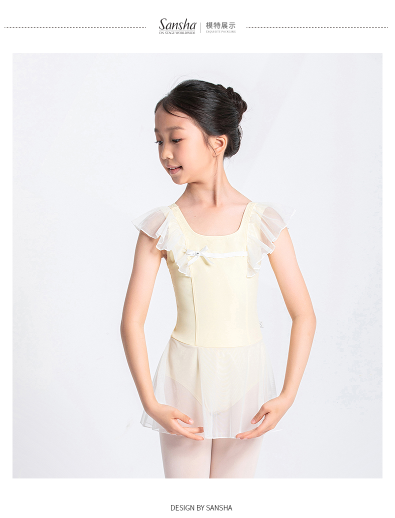 Sansha 三沙儿童舞蹈服 芭蕾舞连体裙中国舞飞袖练功服冰凉牛奶丝