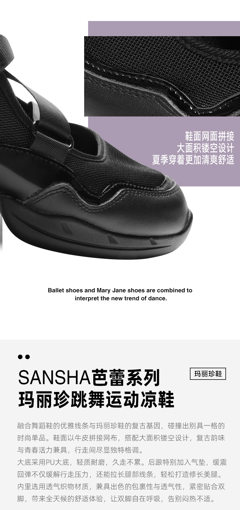 Sansha 三沙广场舞鞋女 夏凉鞋软底跳舞鞋玛丽珍透气现代舞运动鞋