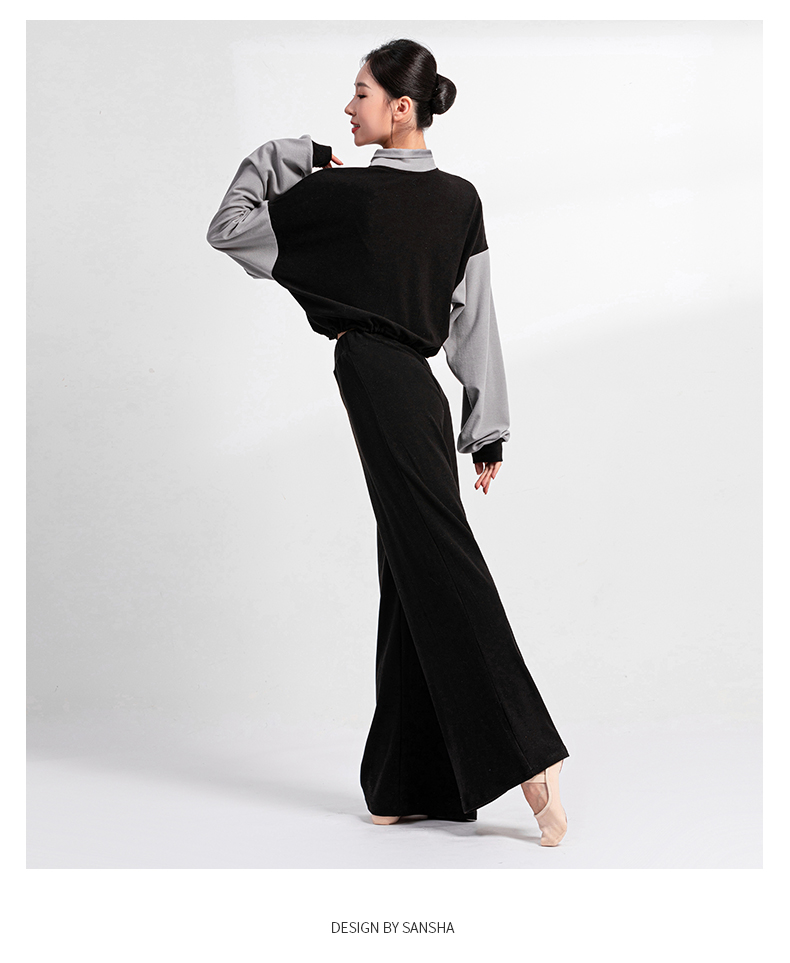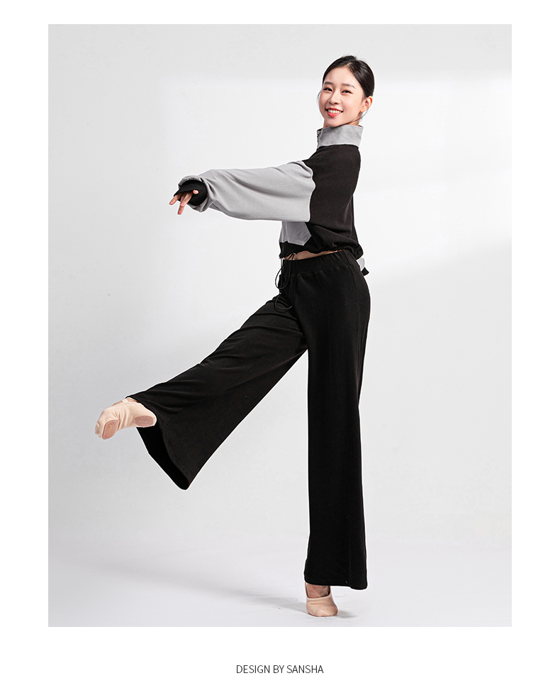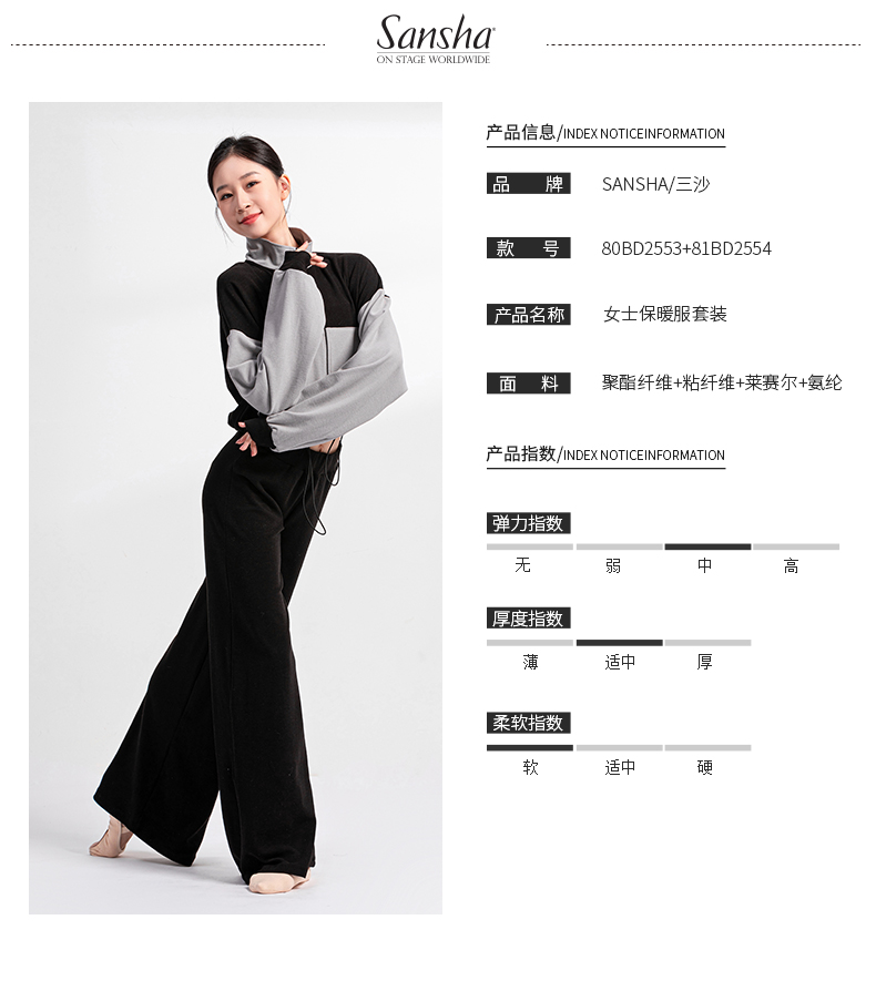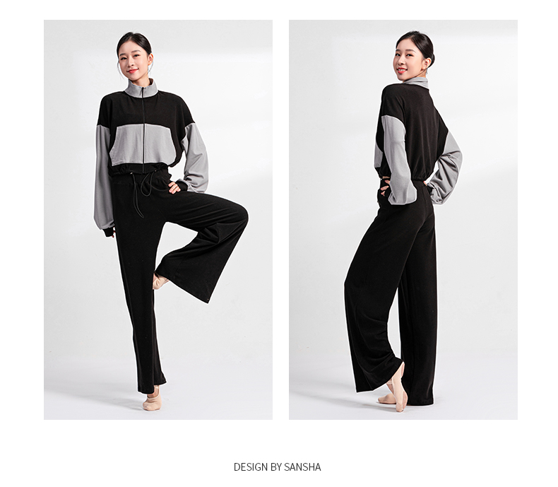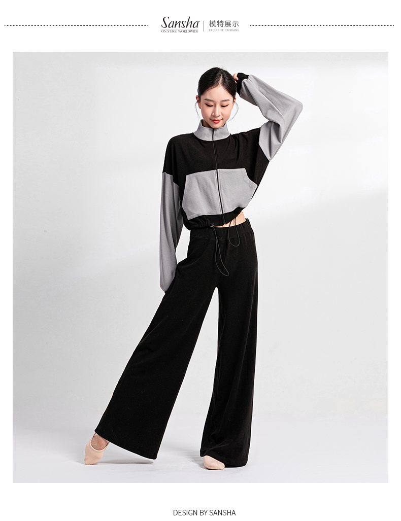 Sansha 三沙舞蹈外套短上衣女 长袖长裤芭蕾舞双面绒热身运动套装