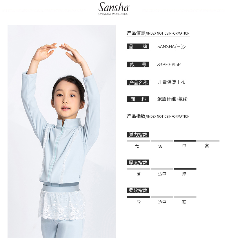 sansha 三沙儿童舞蹈外套 秋冬保暖练功服上衣