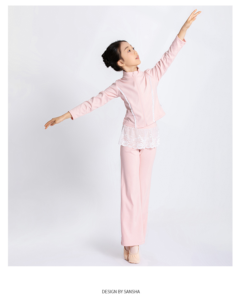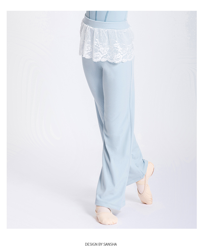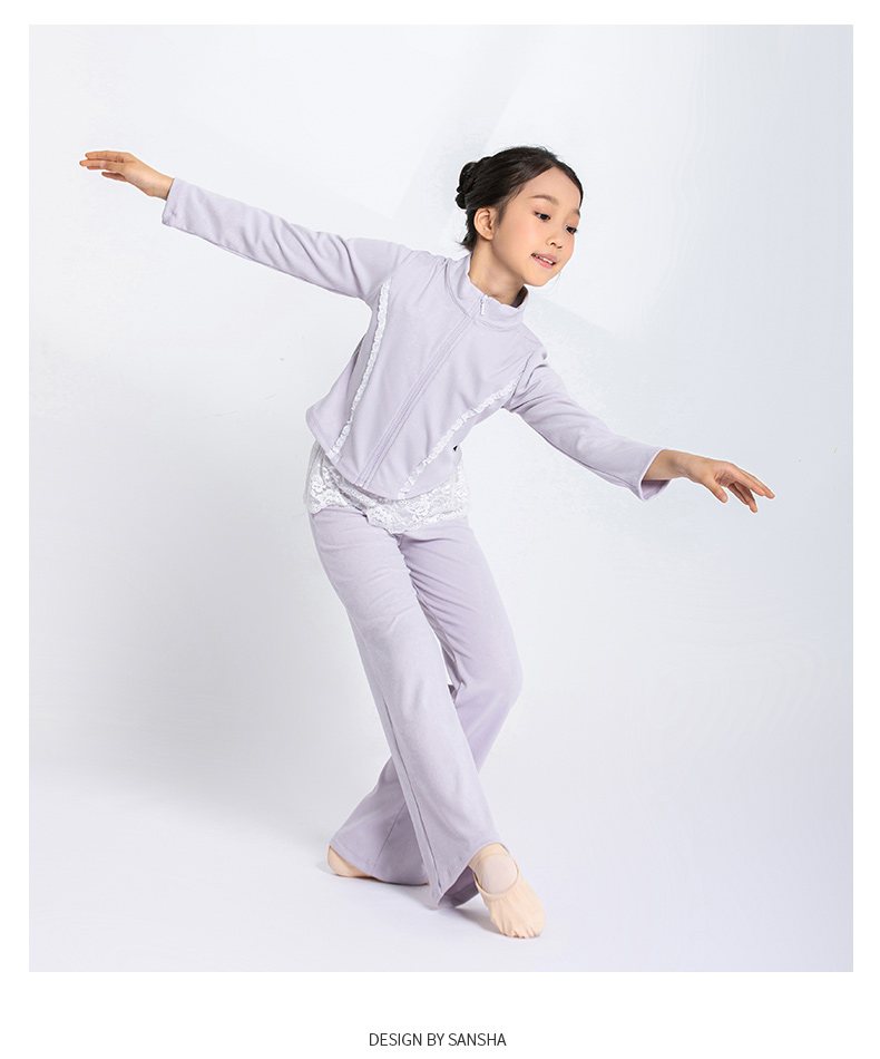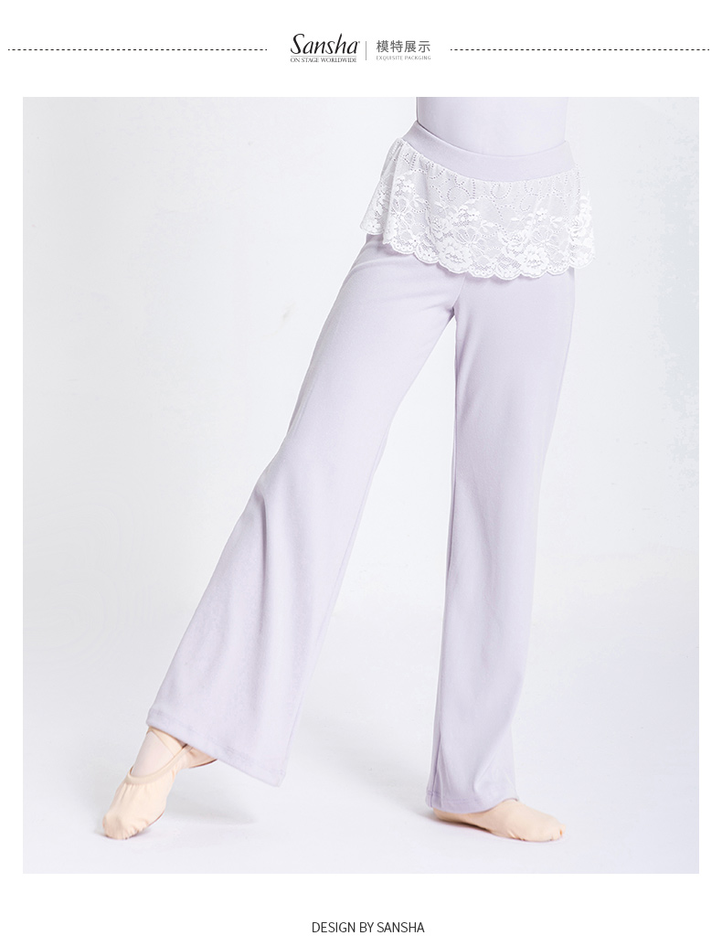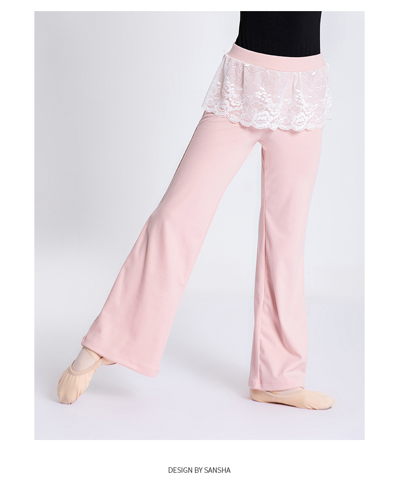 sansha 三沙儿童舞蹈裤 秋冬芭蕾舞热身练功裤叠蕾丝直筒运动裤