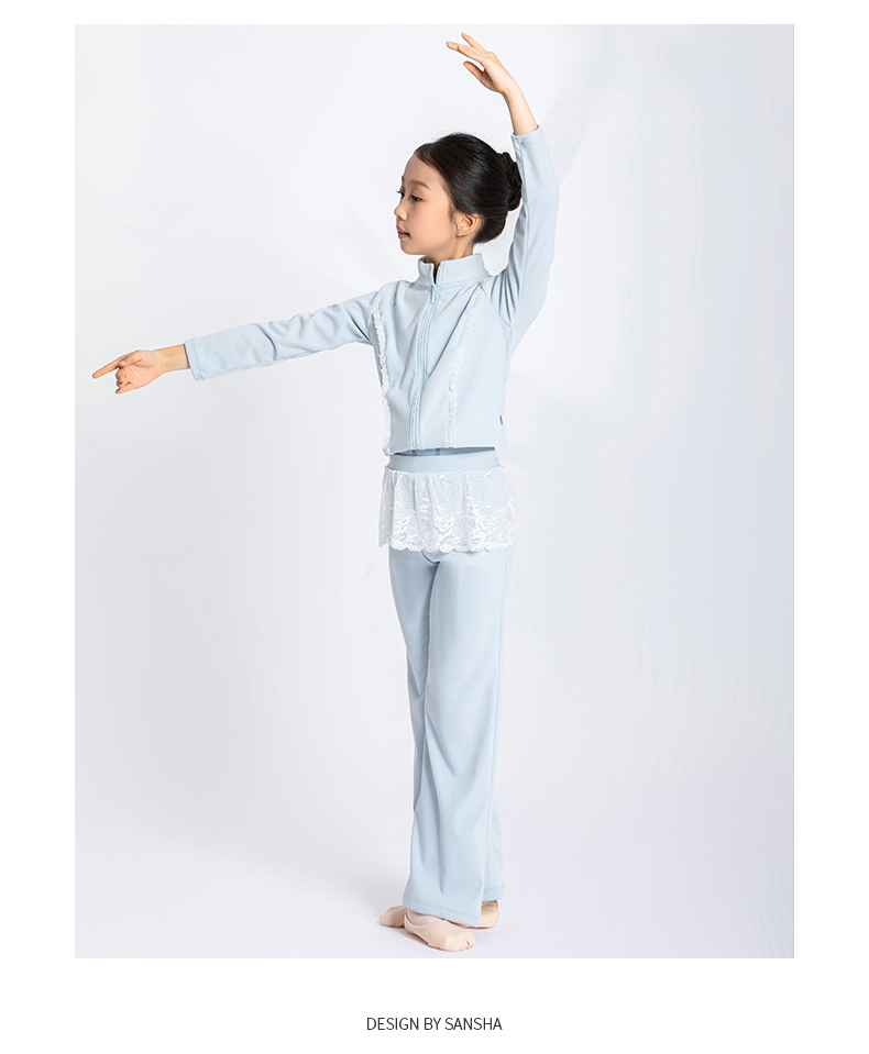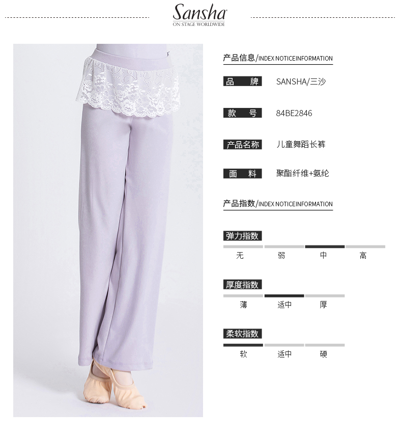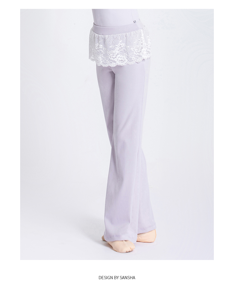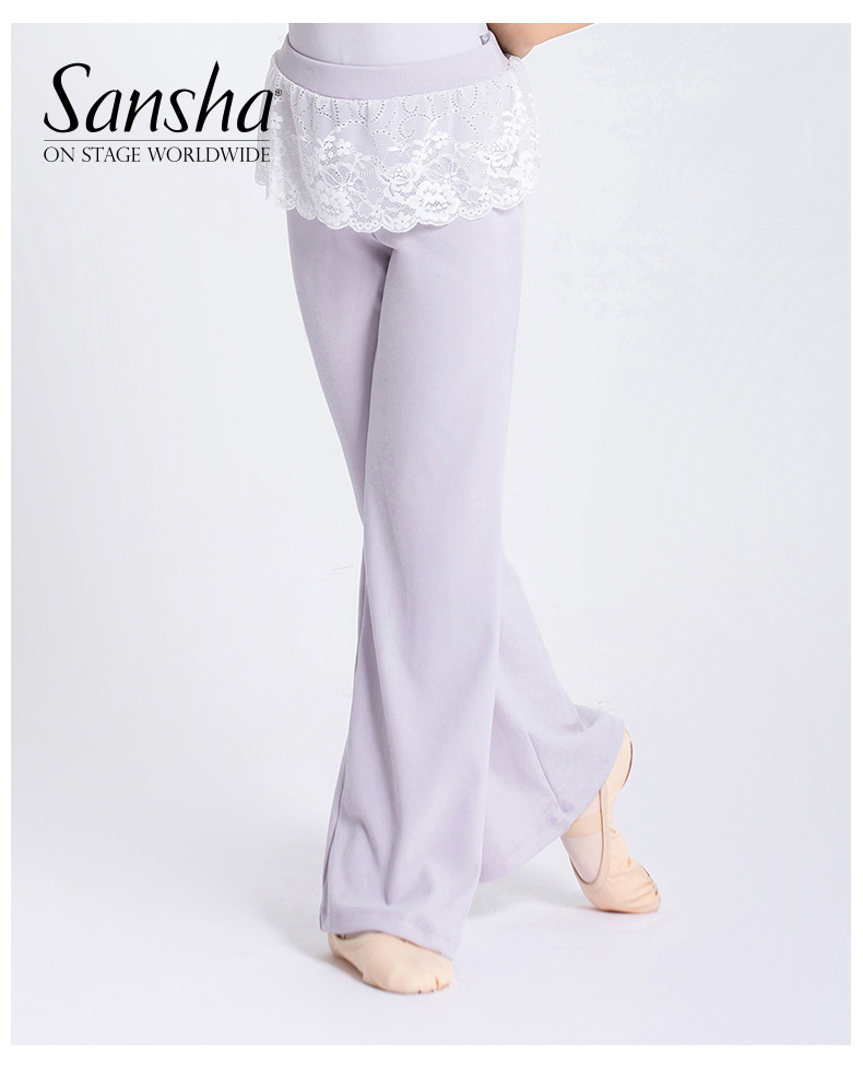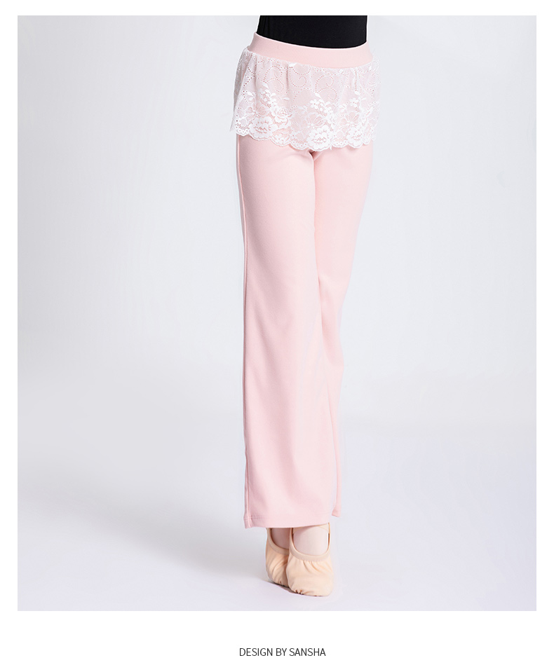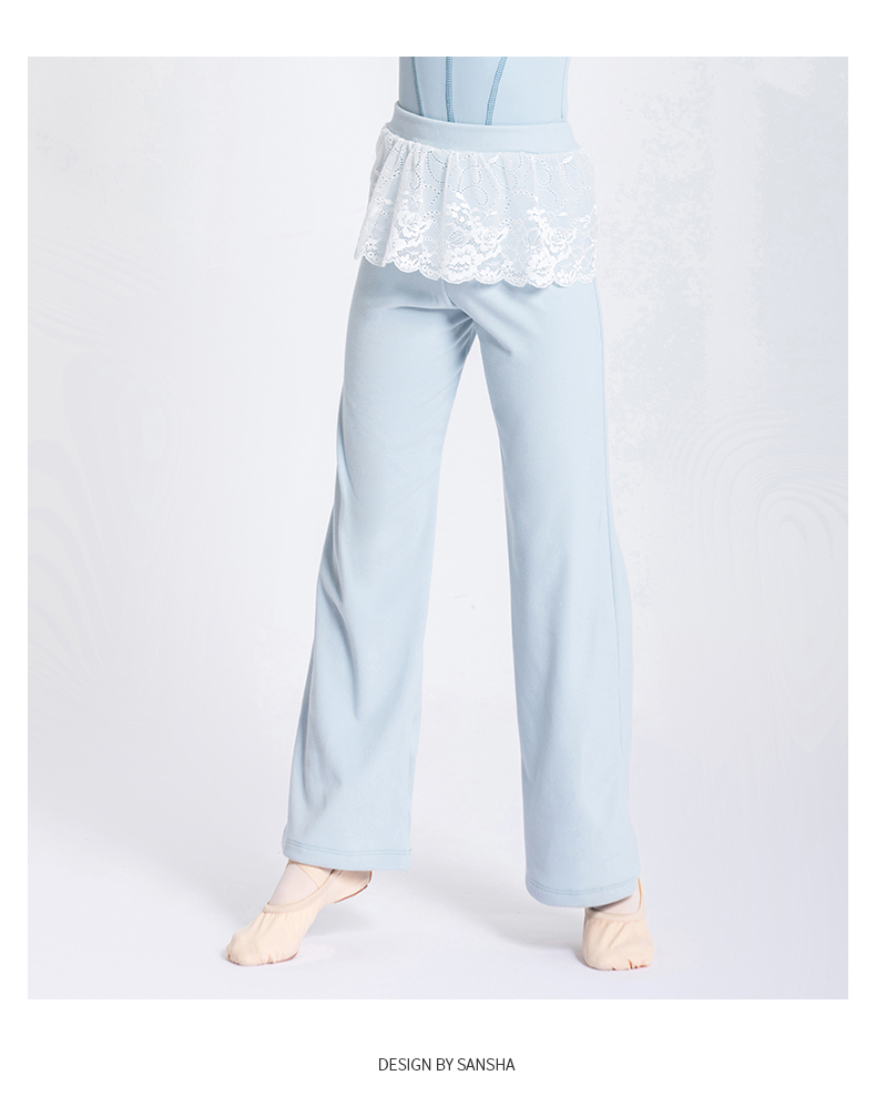 sansha 三沙儿童舞蹈裤 秋冬芭蕾舞热身练功裤叠蕾丝直筒运动裤