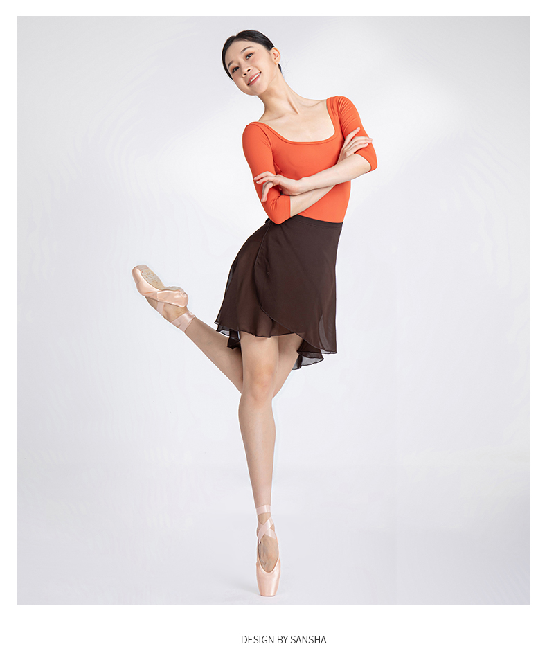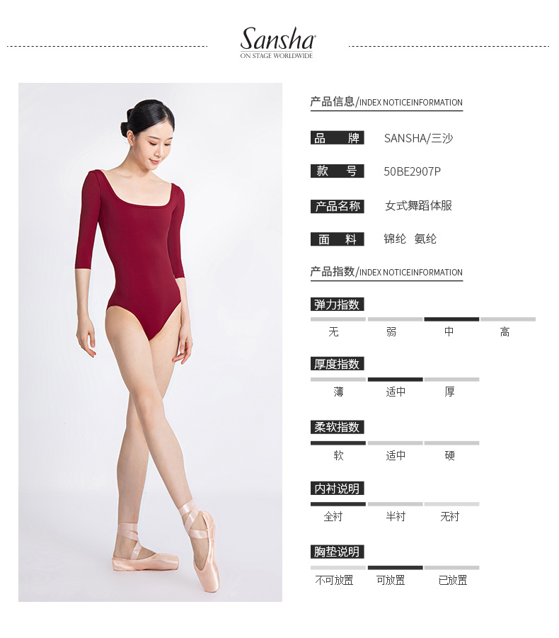 sansha 三沙成功舞蹈服女 芭蕾舞七分袖练功服方领大露背连体服