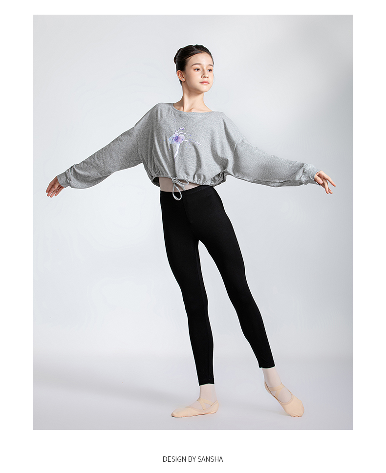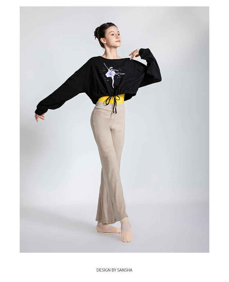 sansha 三沙舞蹈服女 现代舞练功服短款上衣蝙蝠袖芭蕾舞T恤长袖
