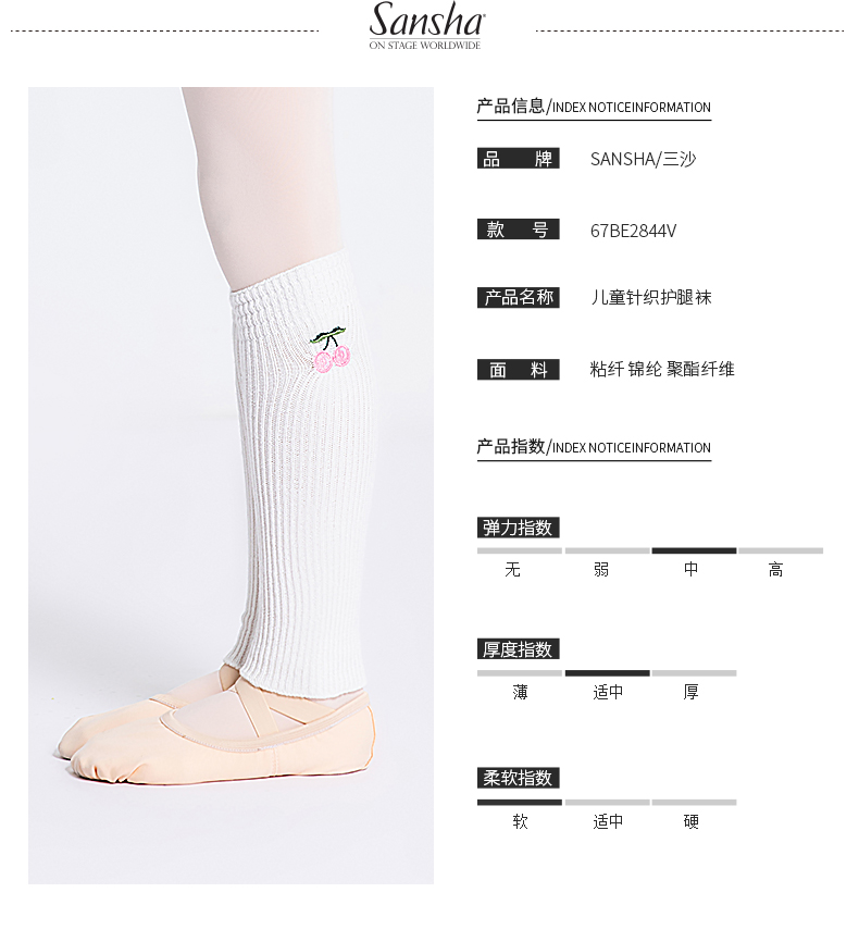 sansha 三沙儿童舞蹈护腿袜 秋冬小腿保暖袜套热身针织堆堆袜护具