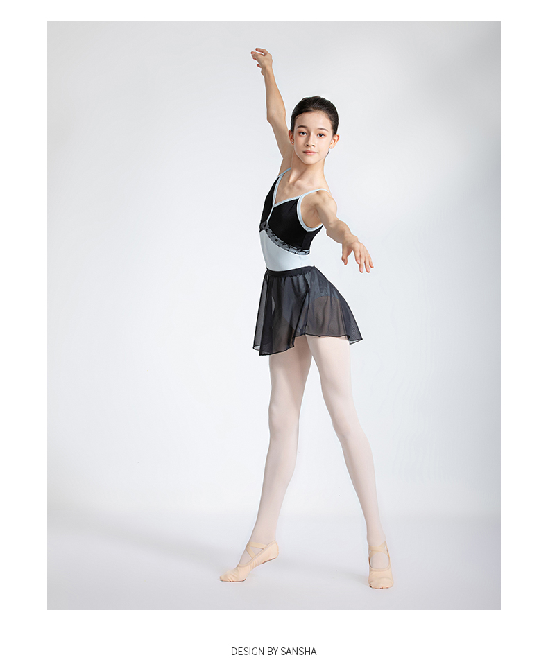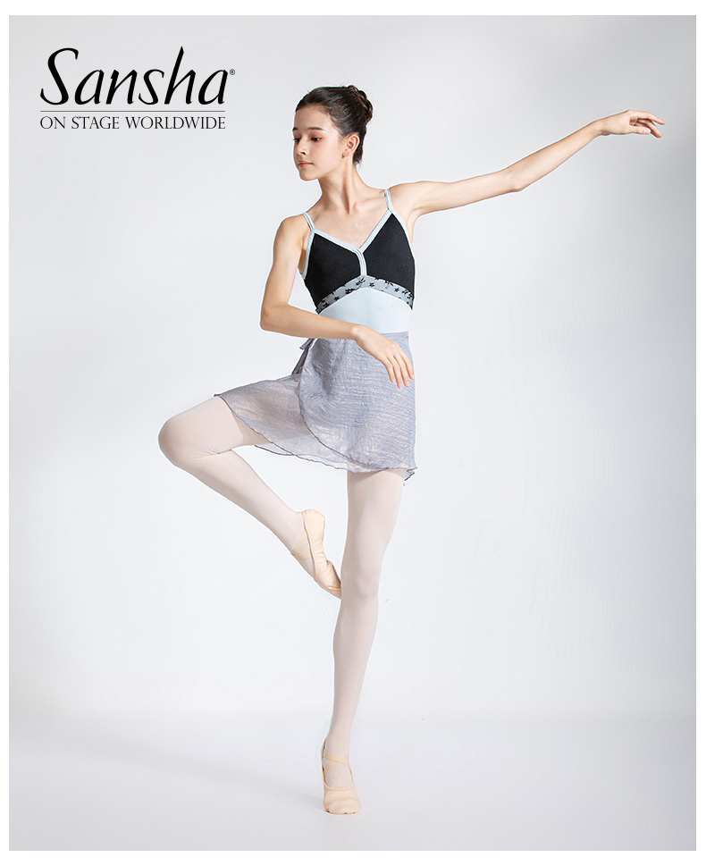 sansha三沙吊带撞色舞蹈服女 V领大背芭蕾舞练功服高胯连体服锦纶