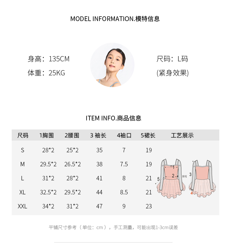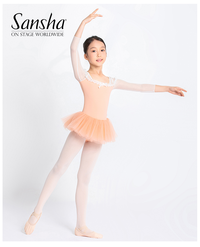 sansha三沙儿童舞蹈裙 开裆连体芭蕾舞练功蓬蓬裙网纱7分袖表演裙
