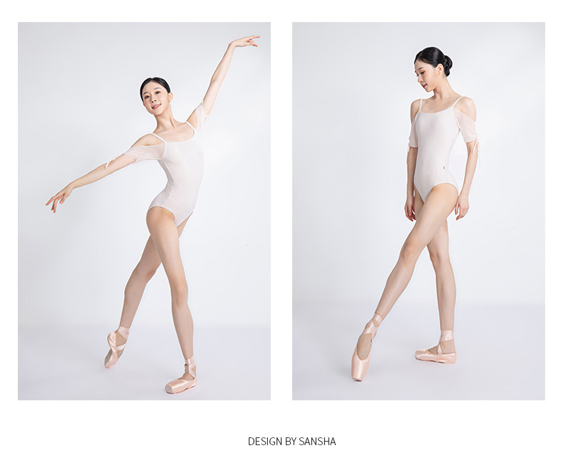 sansha 三沙芭蕾舞练功服女 吊带落肩袖舞蹈连体服表演弹力形体服