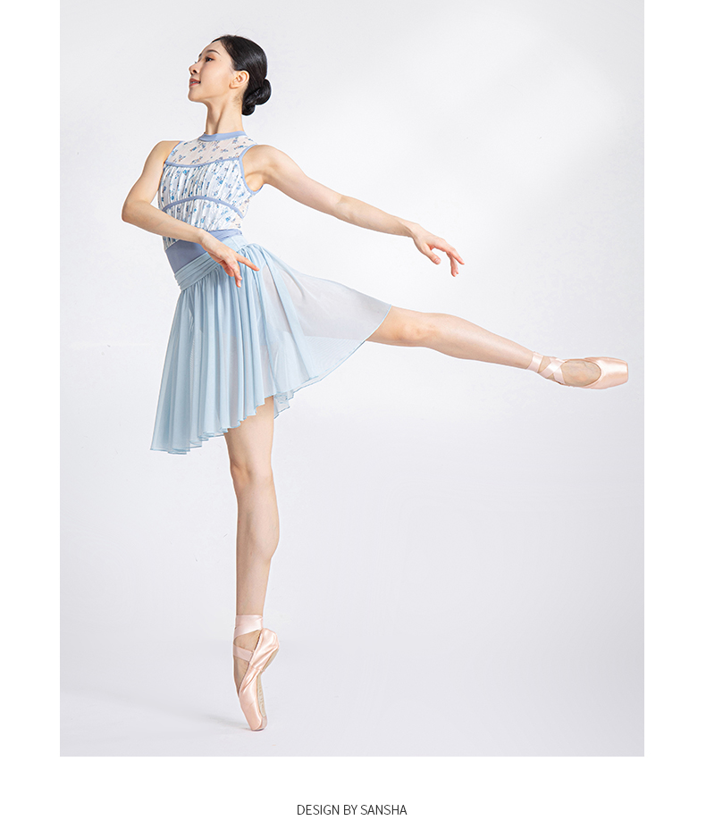 Sansha 三沙舞蹈裙女 芭蕾舞练功裙中裙弹力网纱半身裙短裙A字裙