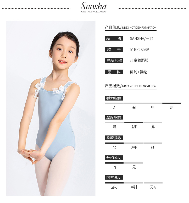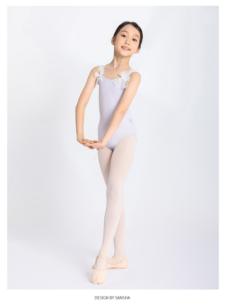 Sansha 三沙儿童宽吊带舞蹈服 蝴蝶结芭蕾舞背心连体服开裆练功服