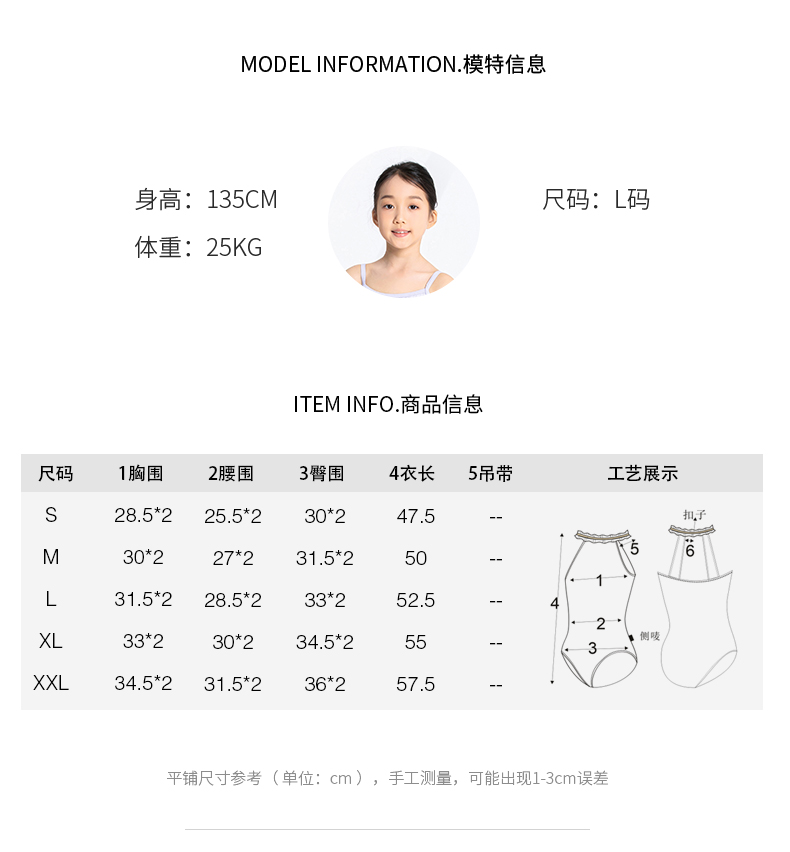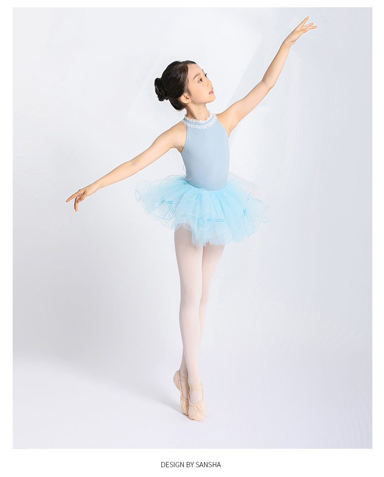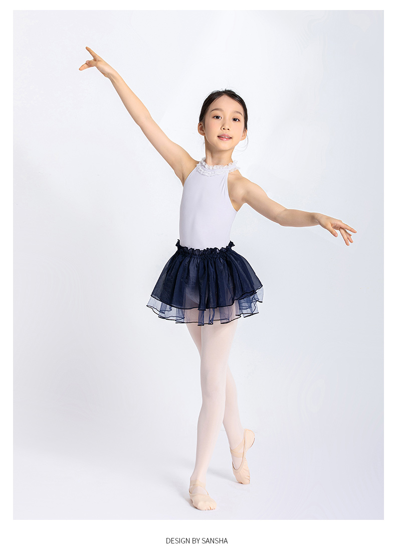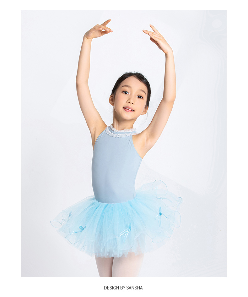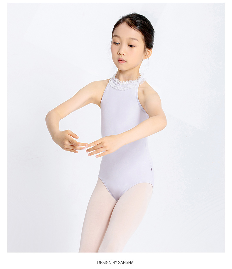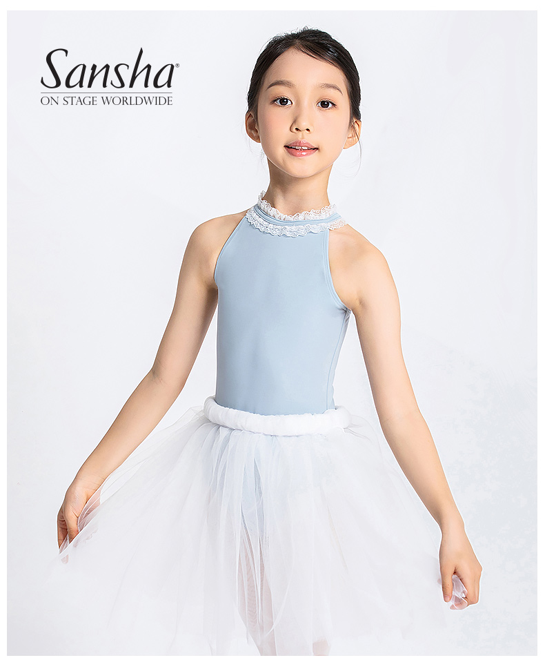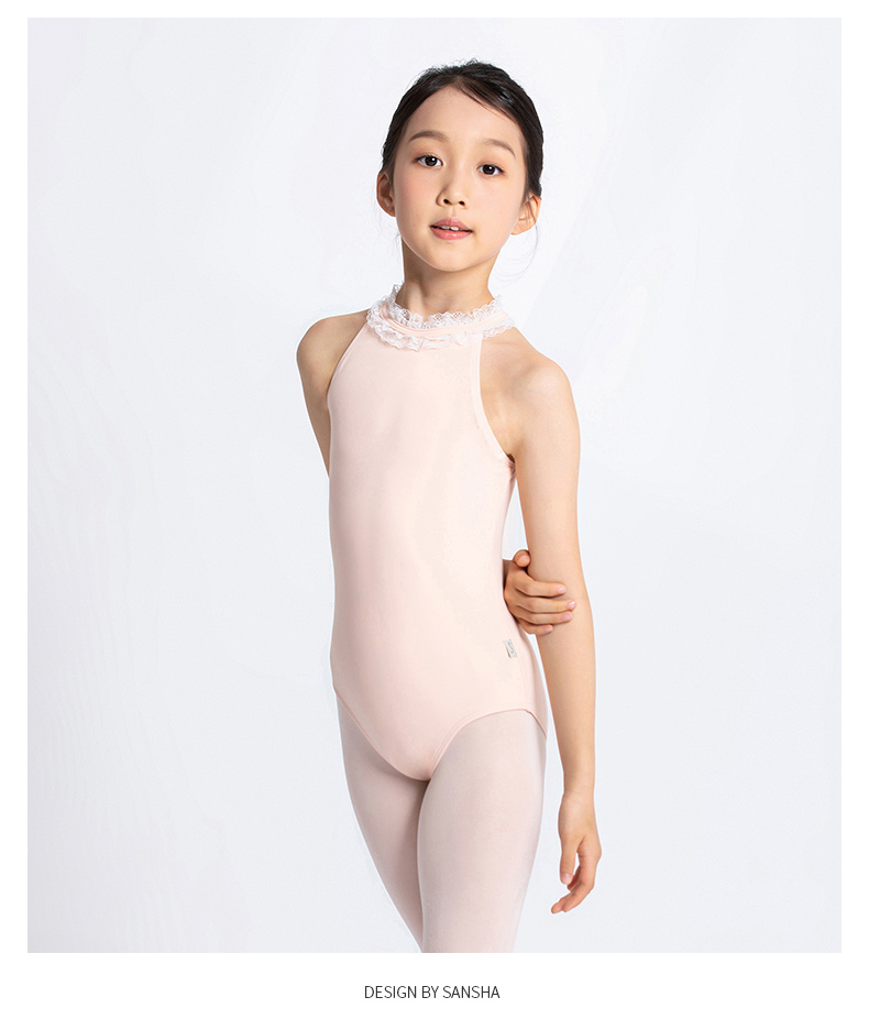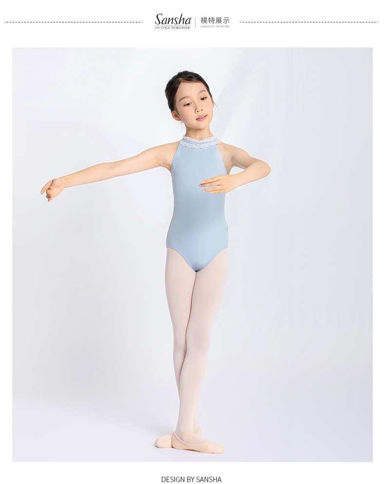Sansha 三沙儿童舞蹈服 挂脖锦纶芭蕾舞服开裆练功服连体服形体