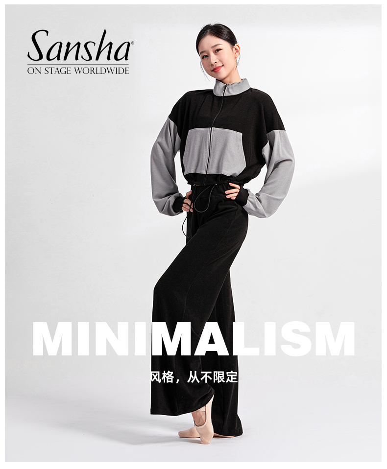 Sansha 三沙舞蹈外套短上衣女 长袖长裤芭蕾舞双面绒热身运动套装