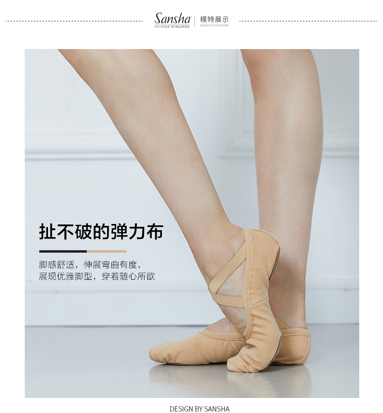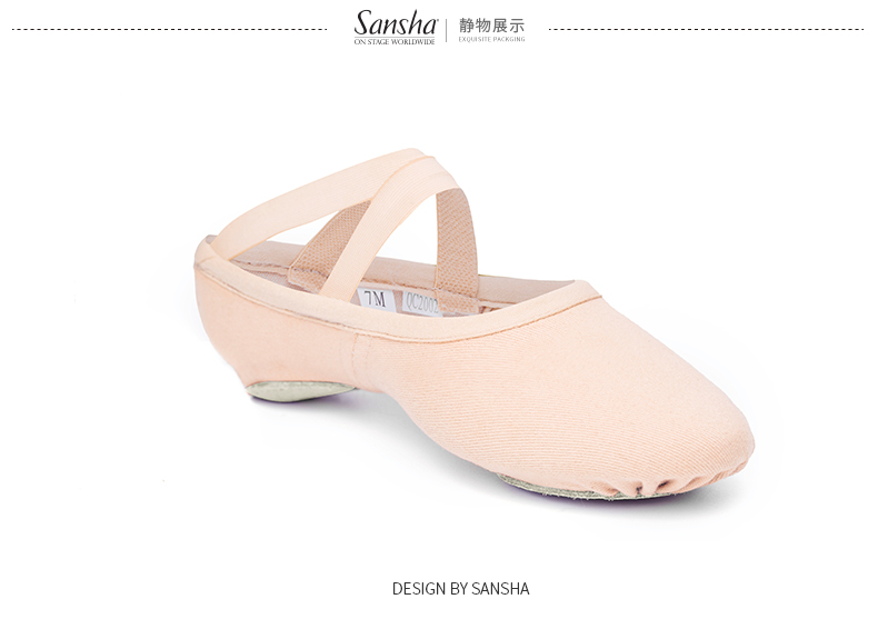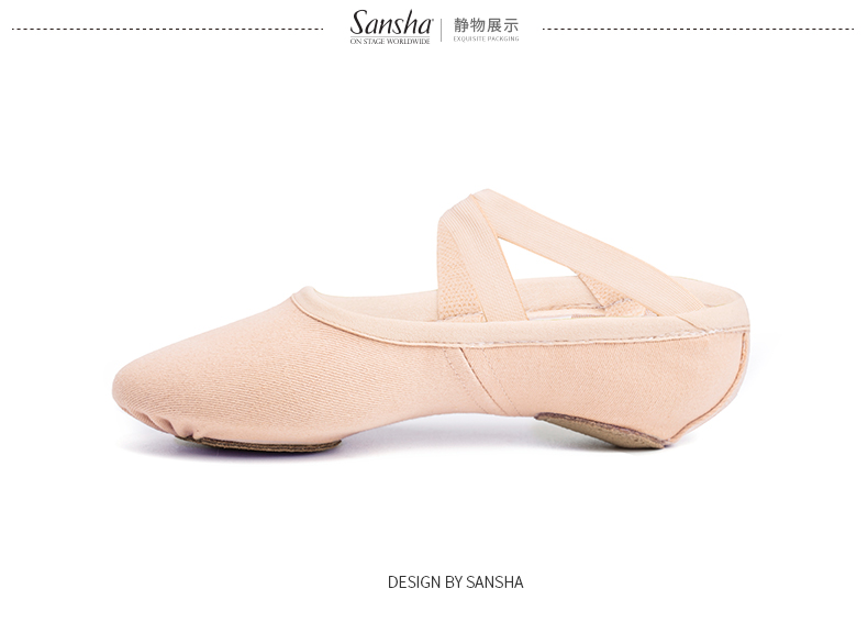 sansha法国三沙芭蕾舞软鞋练功鞋弹力布两块底猫爪鞋M007C/Marc