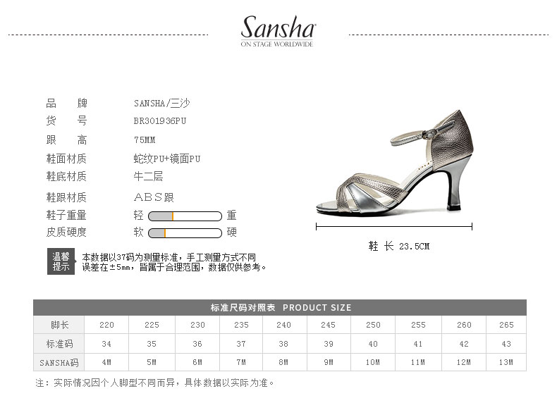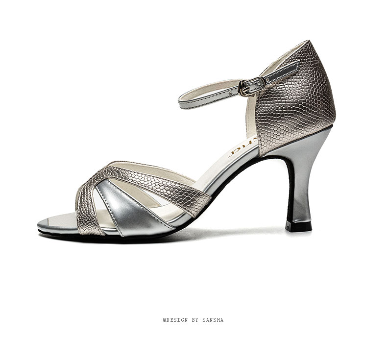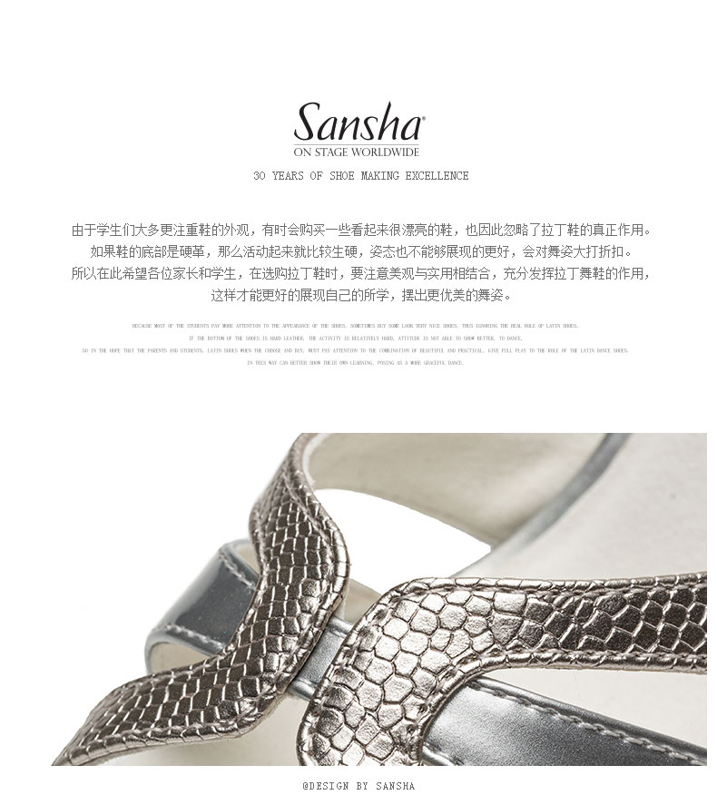Sansha 法国三沙运拉丁舞蹈鞋金属PU高跟国标舞鞋专业软底恰恰舞蹈鞋