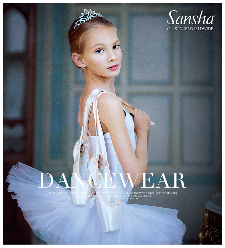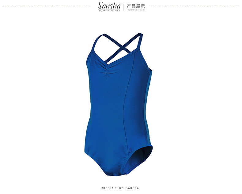 Sansha 三沙女童芭蕾舞练功服儿童吊带开裆舞蹈连体服弹力演出服