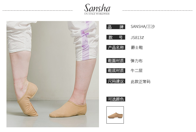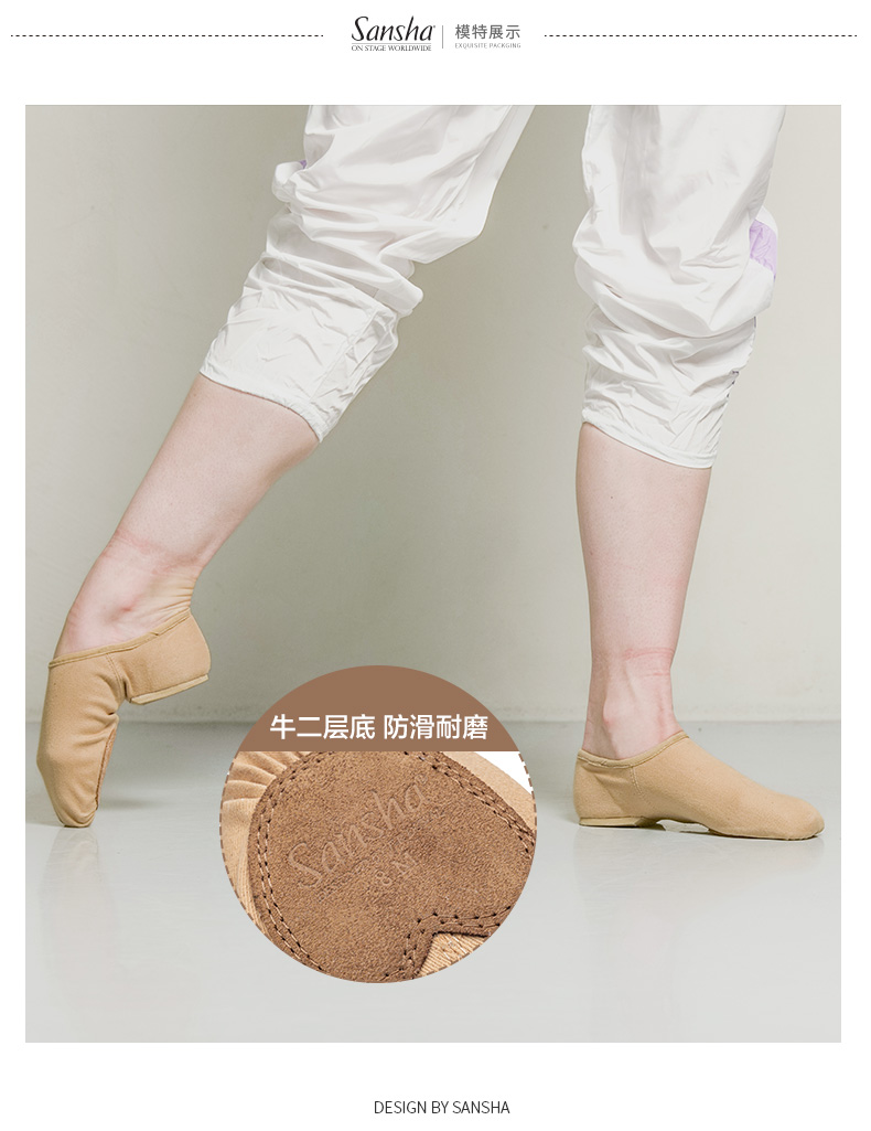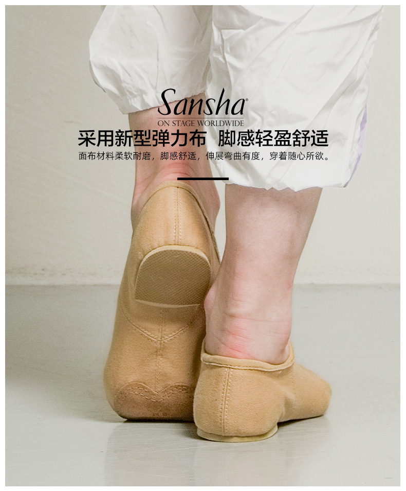 Sansha 三沙爵士舞鞋弹力布舞蹈鞋软底矮帮免系带现代舞鞋