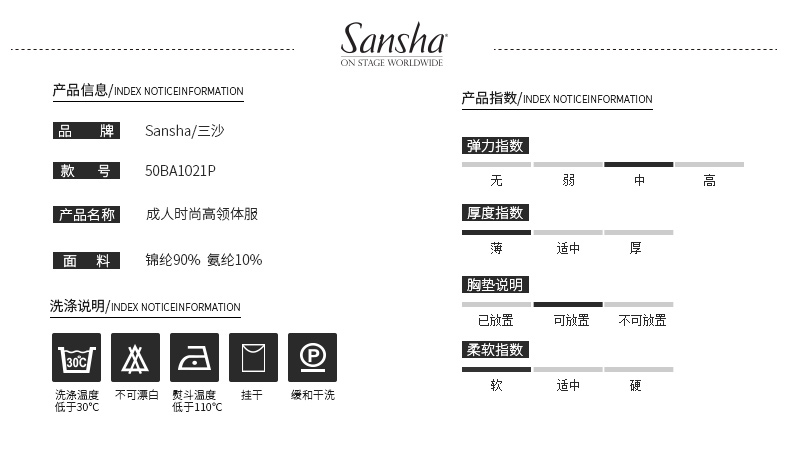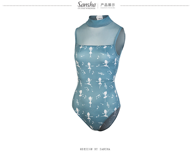 Sansha 三沙成人芭蕾舞练功服高领印花舞蹈连体服女蕾丝体操演出
