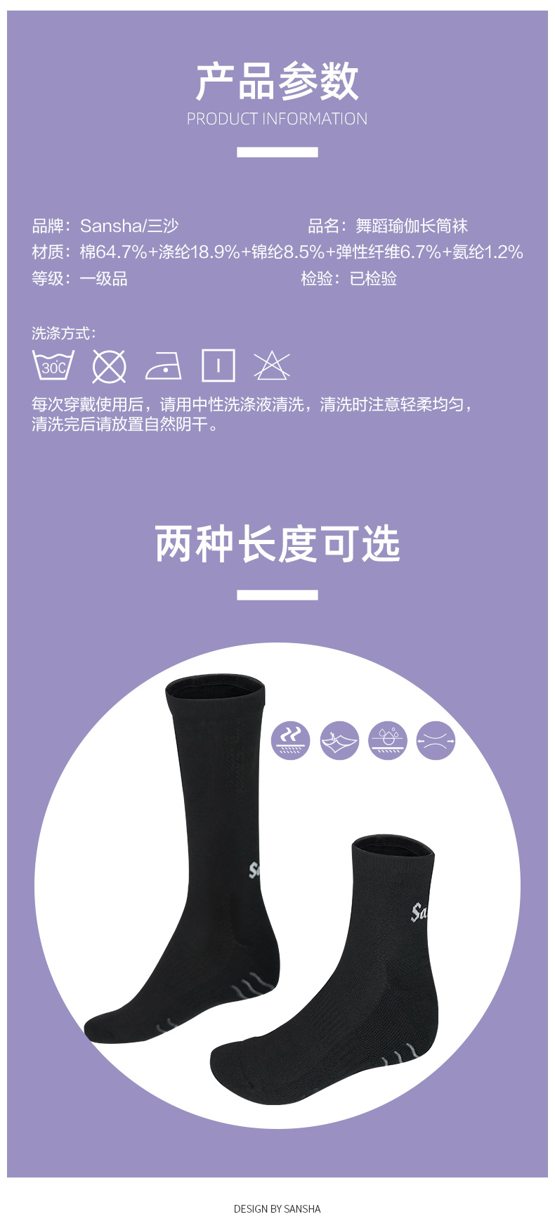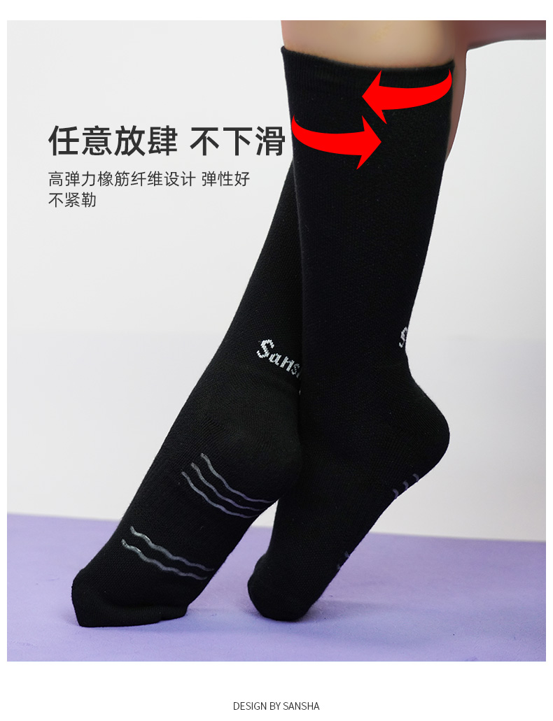 Sansha三沙瑜伽袜防滑女薄专业普拉提中筒健身运动室内夏季袜子