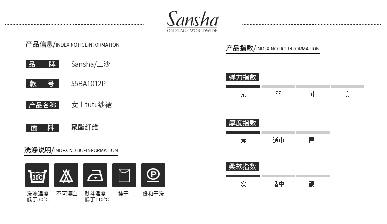 Sansha 法国三沙芭蕾舞裙 夏季女软纱tutu裙舞蹈半身裙仙气网纱裙