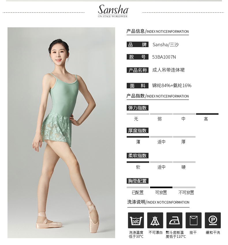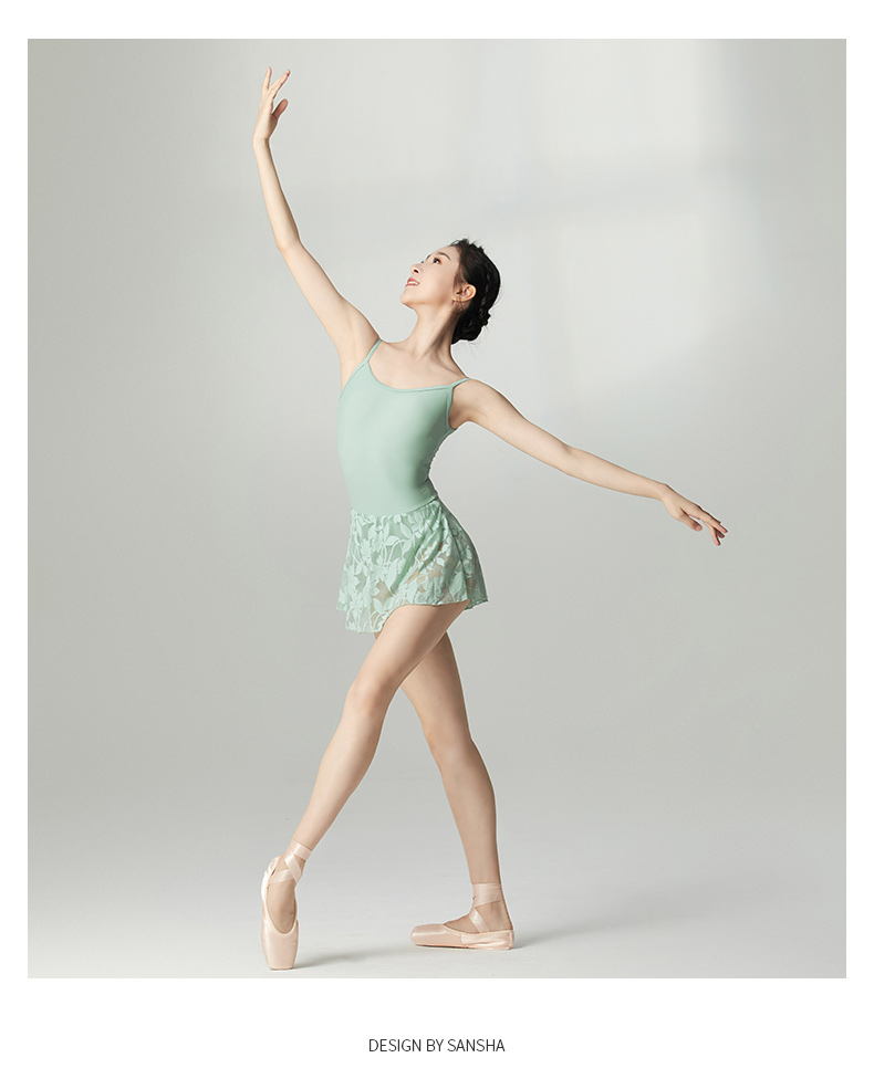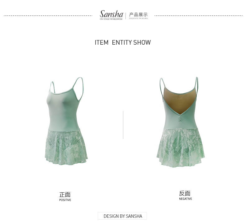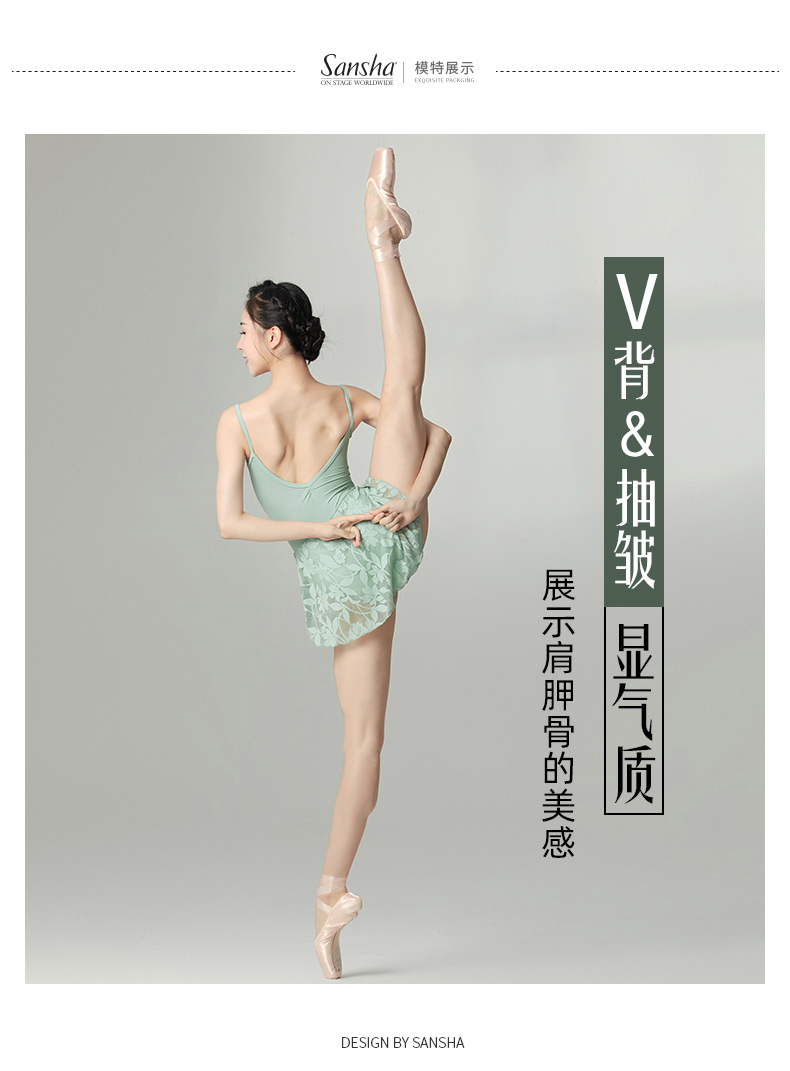 sansha 法国三沙舞蹈服女练功 吊带少女绿芭蕾体服裙V领大背高胯