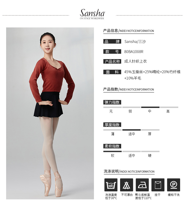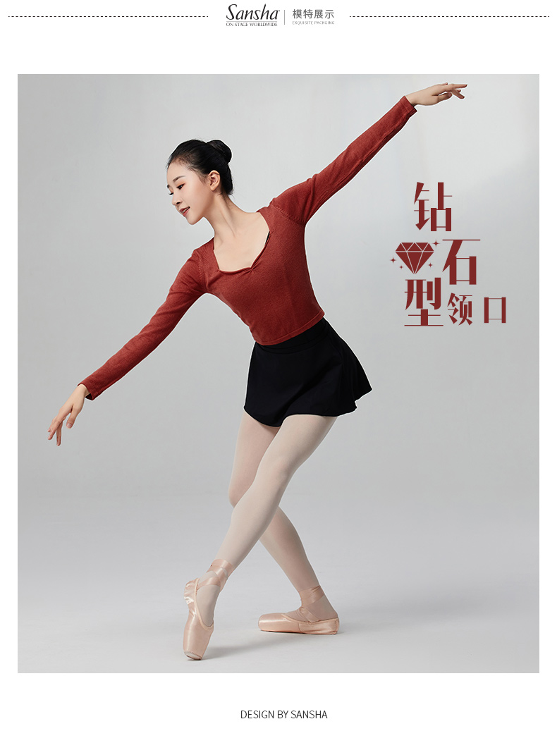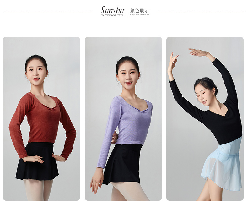 sansha 三沙舞蹈毛衣女练功服女 长袖针织上衣芭蕾舞秋冬保暖外套