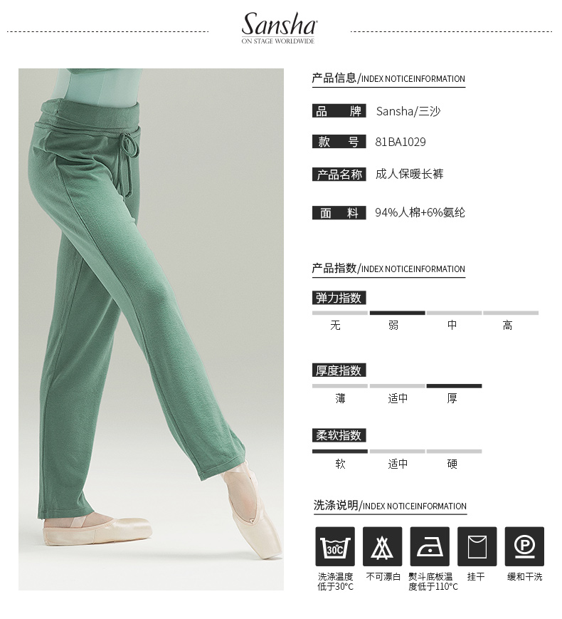 sansha 法国三沙芭蕾舞练功裤 女 秋冬舞蹈保暖裤热身长裤厚直筒