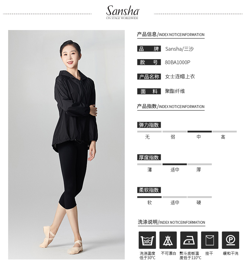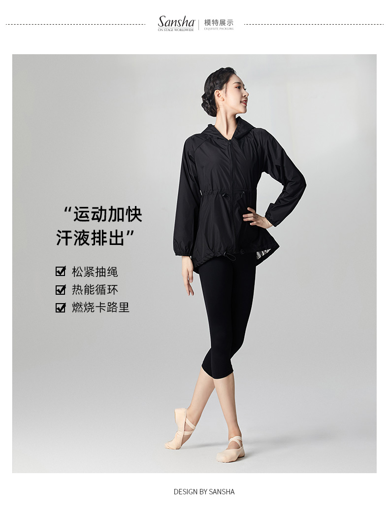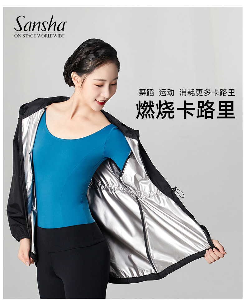 sansha 法国三沙发汗服女 舞蹈练功外套热身运动跑步闷汗上衣