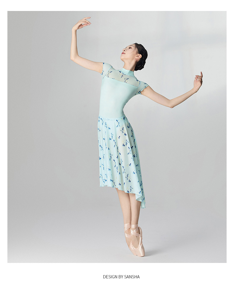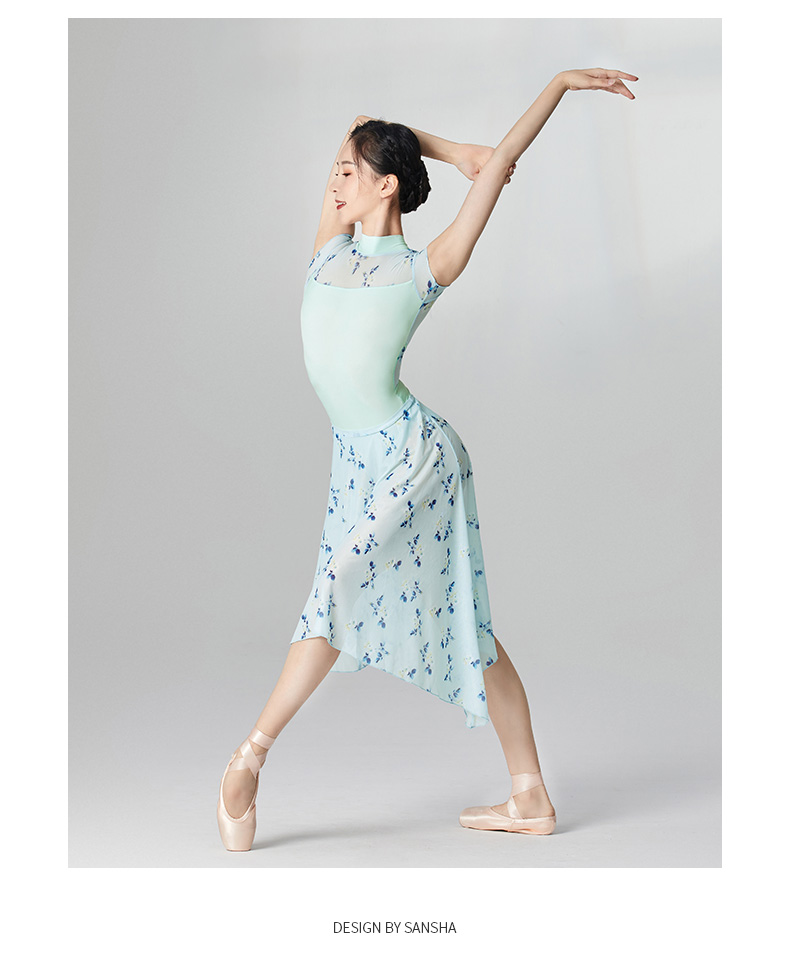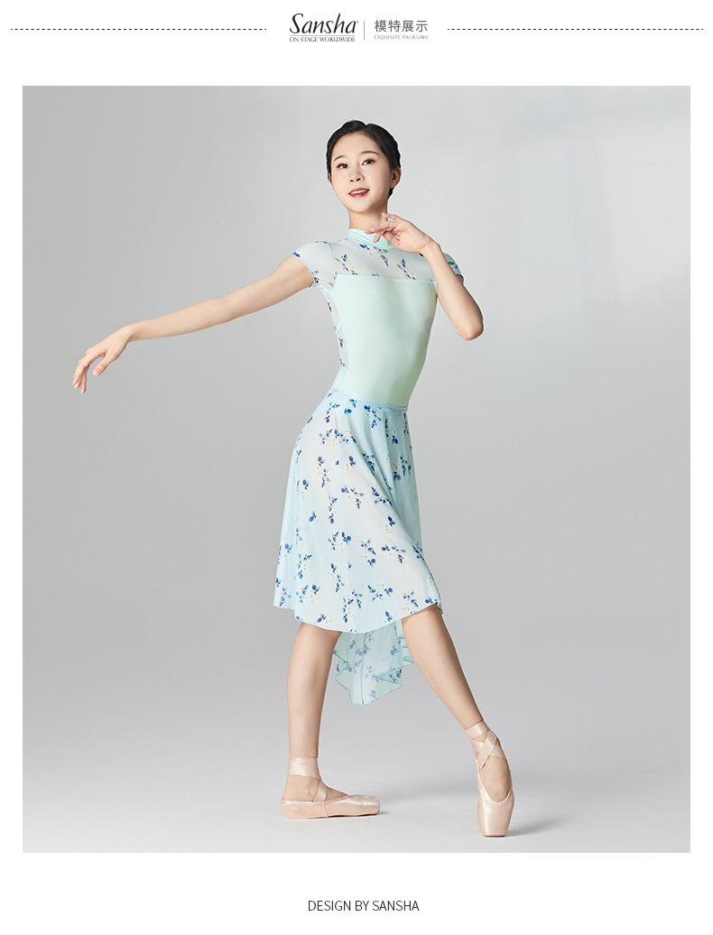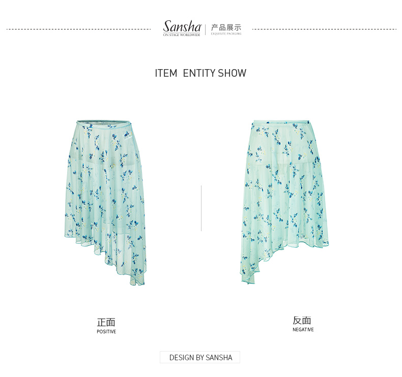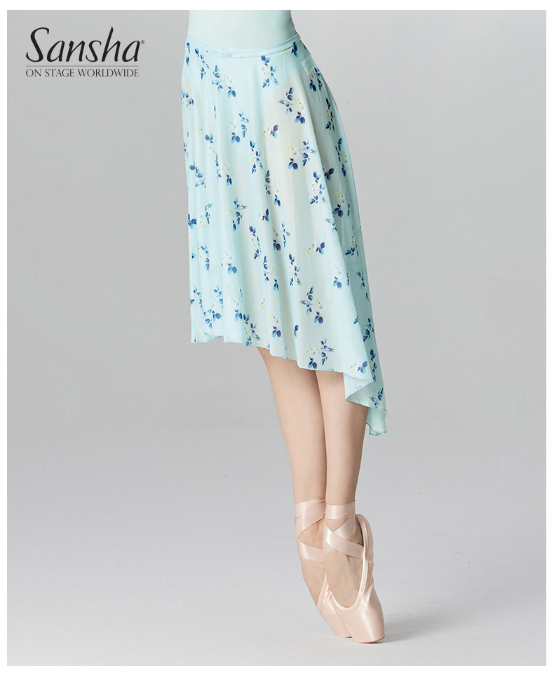 sansha 三沙芭蕾舞半身裙 弹力网不规则下摆舞蹈裙女碎花中长裙