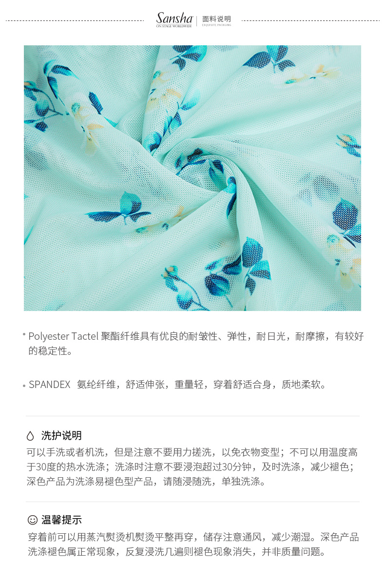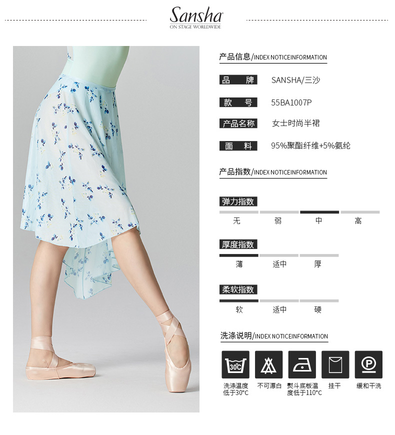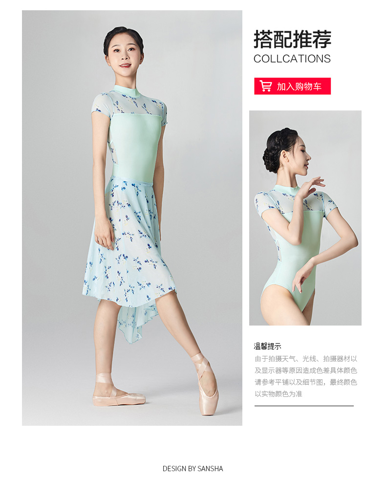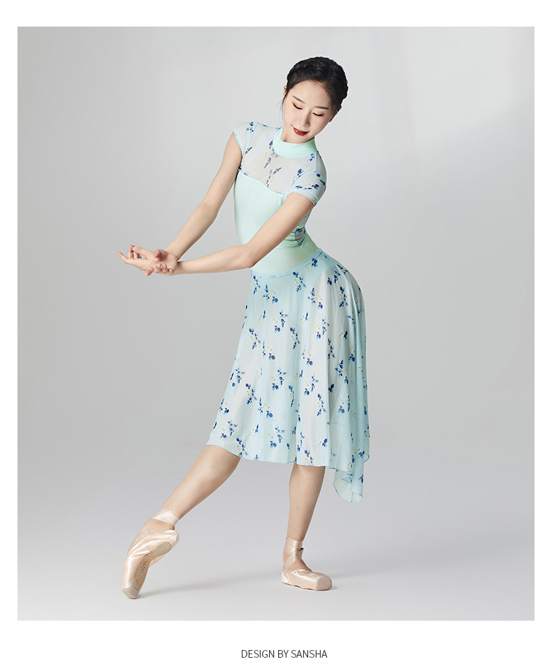 sansha 三沙芭蕾舞半身裙 弹力网不规则下摆舞蹈裙女碎花中长裙
