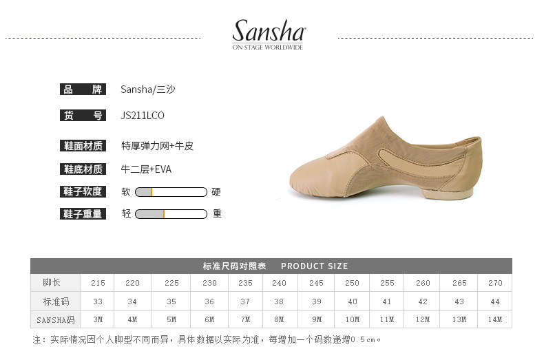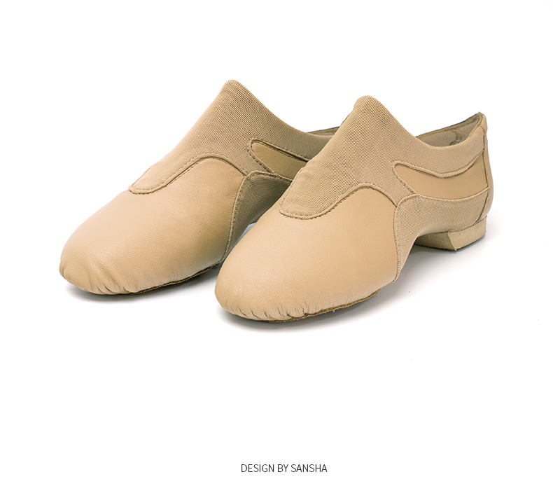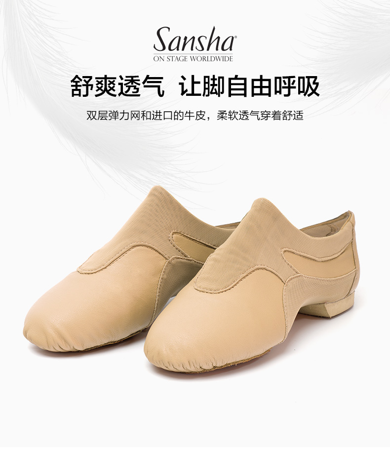 sansha 三沙爵士舞鞋 弹力网牛皮现代舞鞋软底教师鞋舞蹈练功鞋