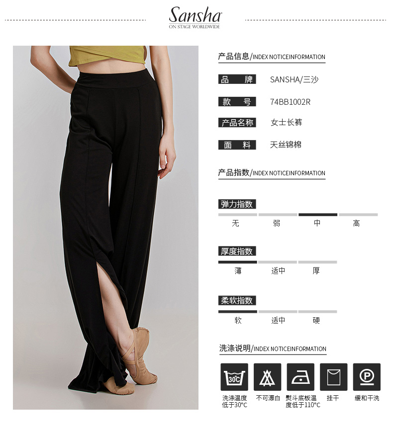 sansha 三沙舞蹈裤 开叉现代舞服长裤 中国古典舞练功裤形体裤子女