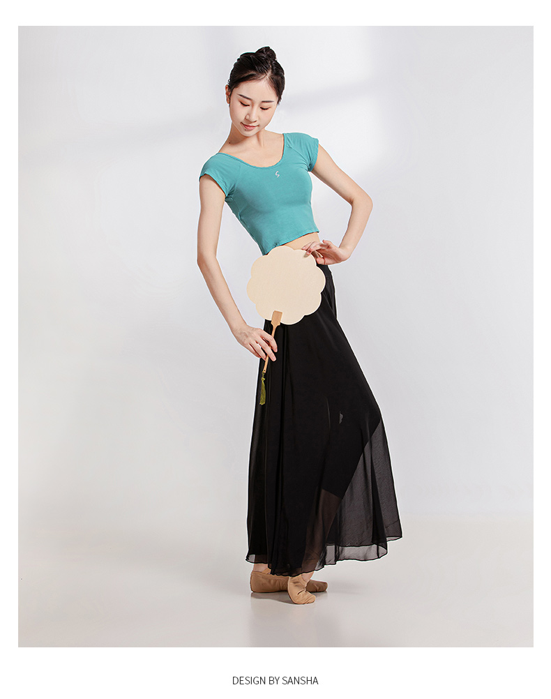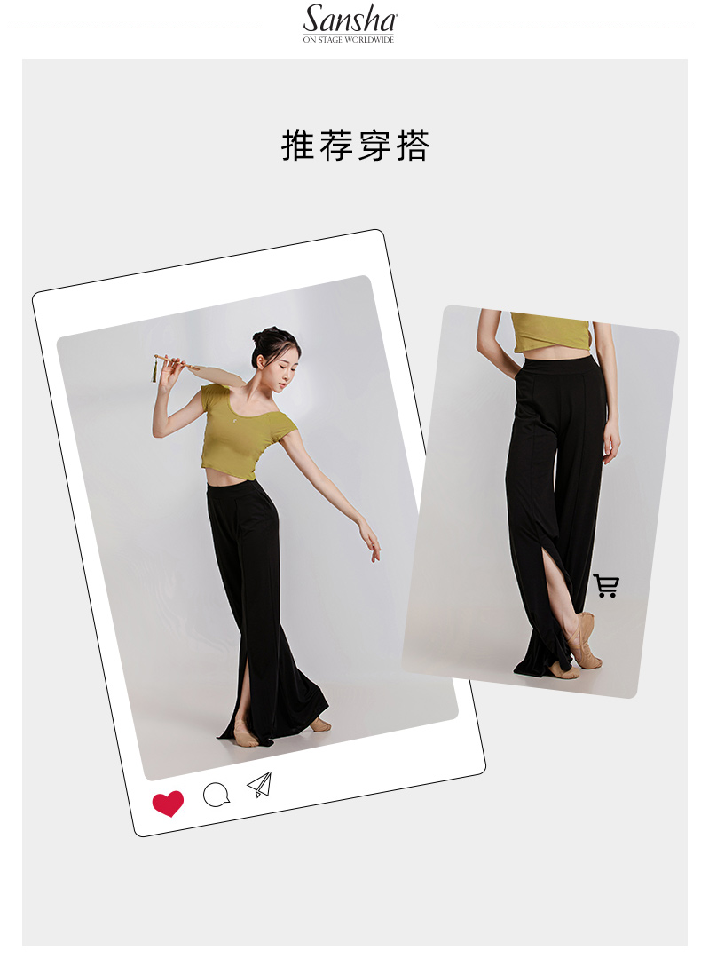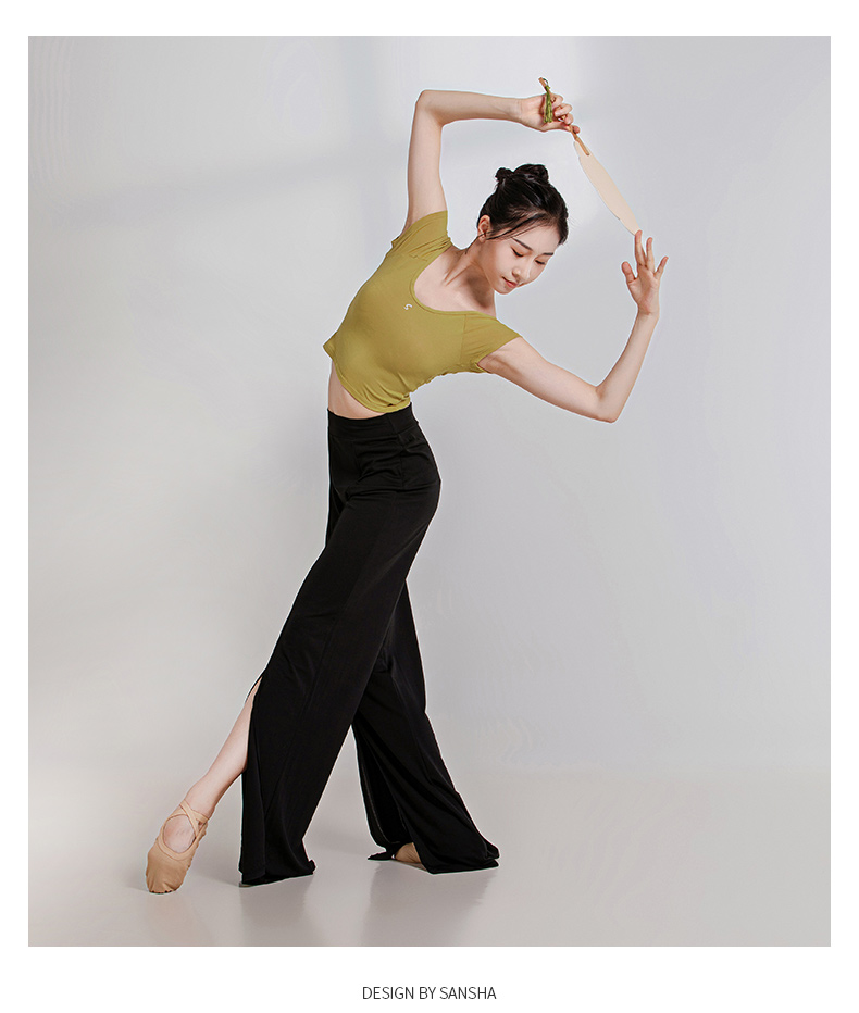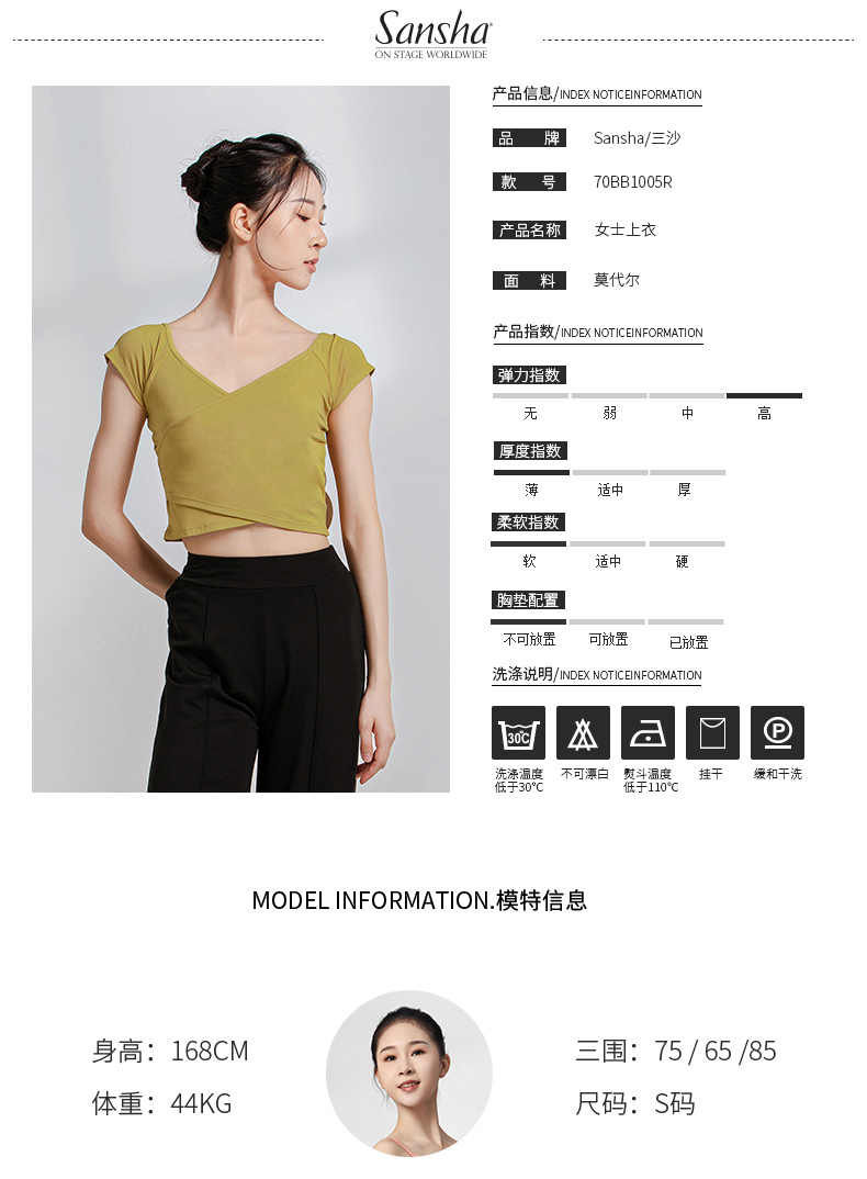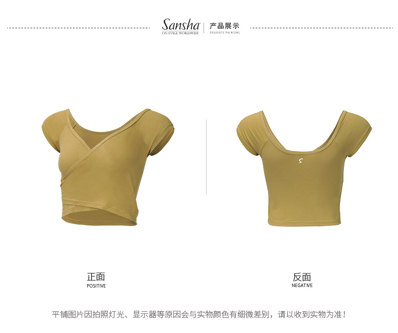 sansha 三沙现代舞服上衣女 交叉V领短款舞蹈服中国舞练功形体服