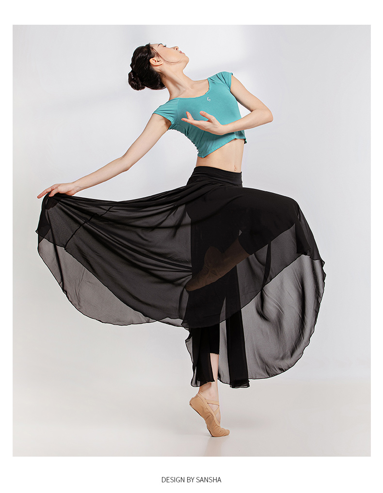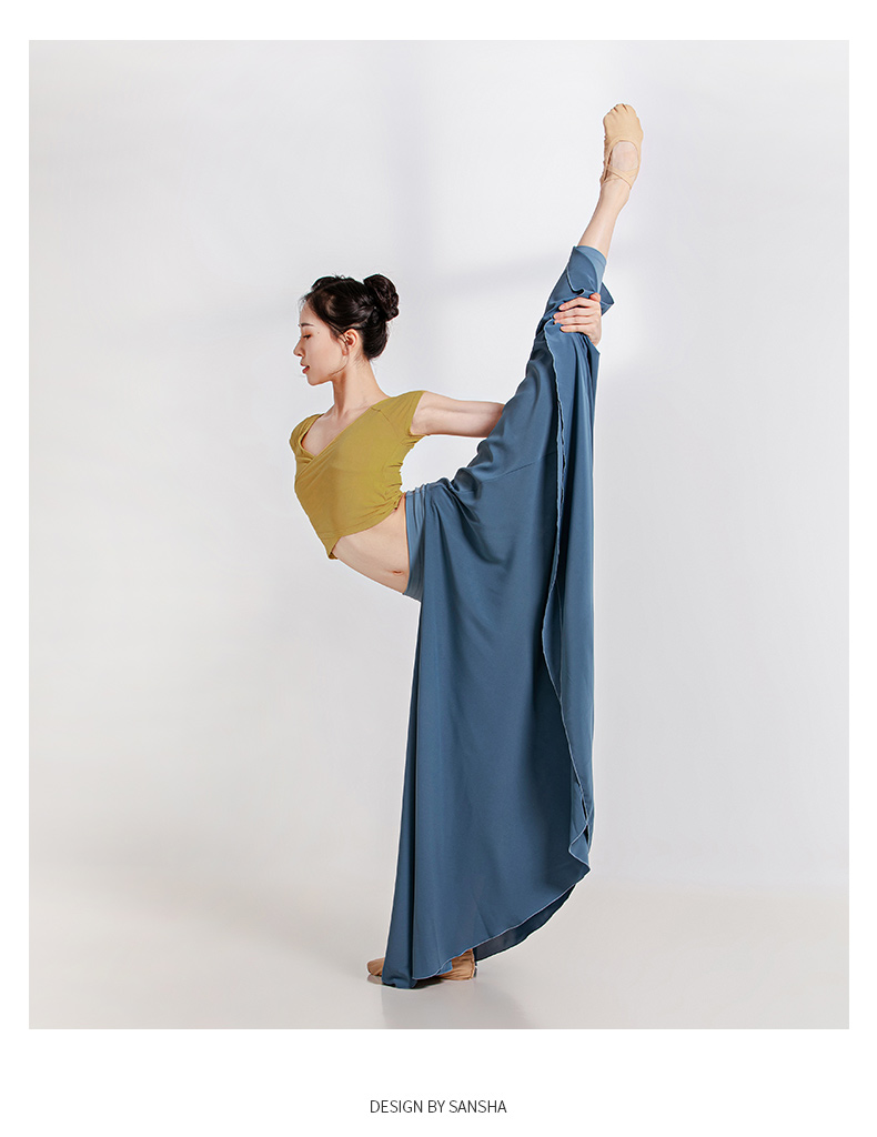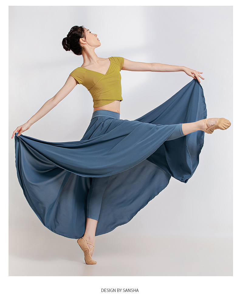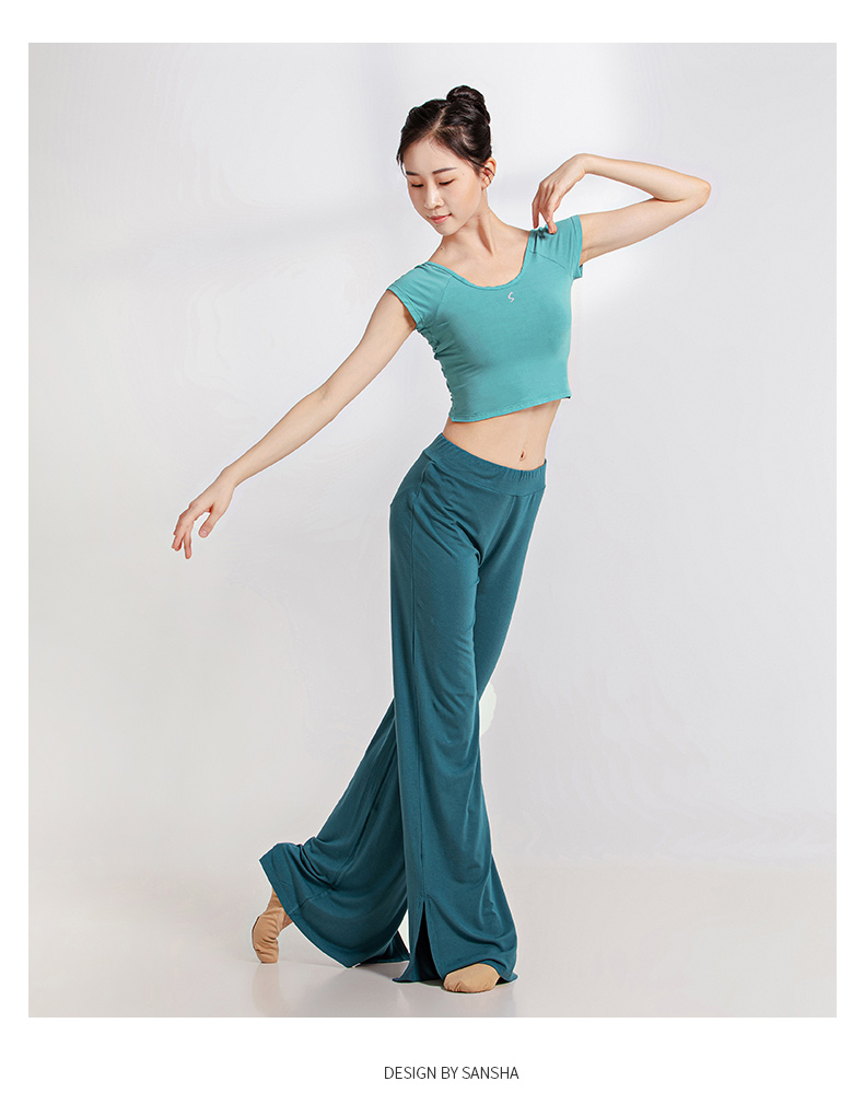 sansha 三沙现代舞服上衣女 交叉V领短款舞蹈服中国舞练功形体服