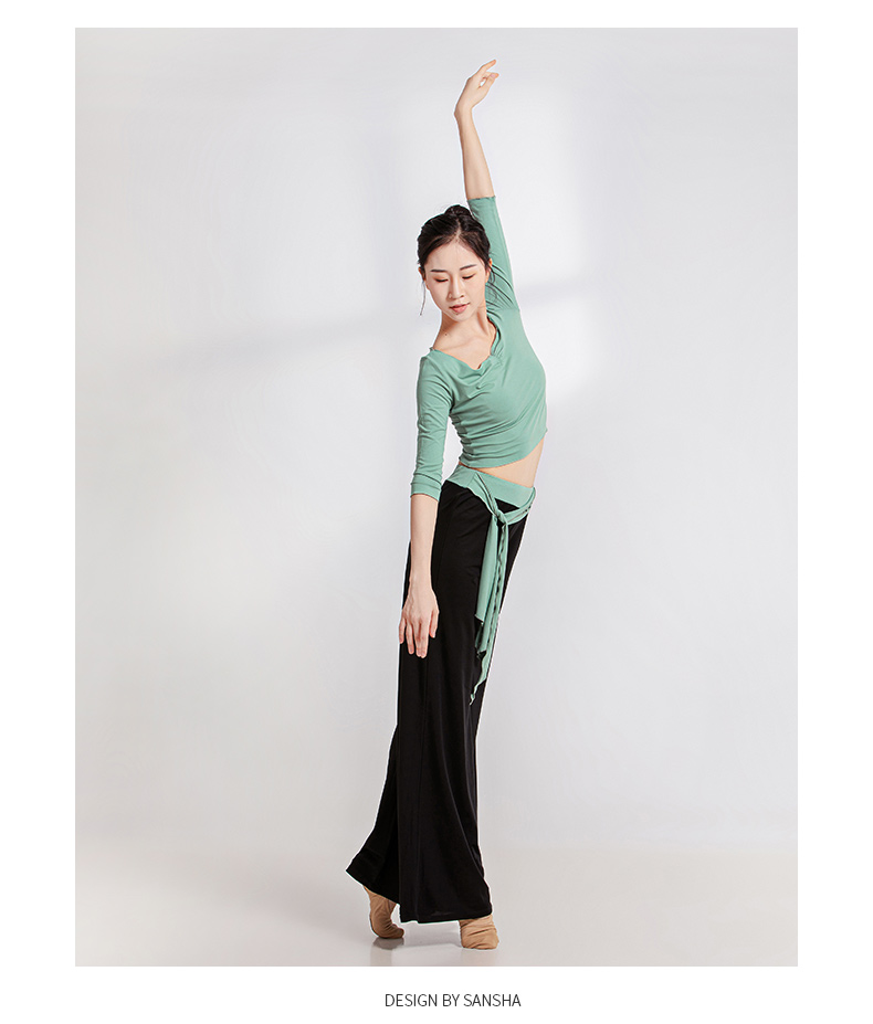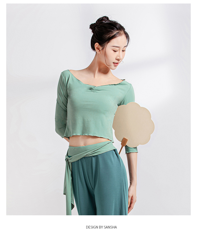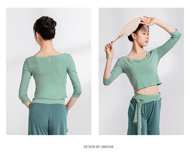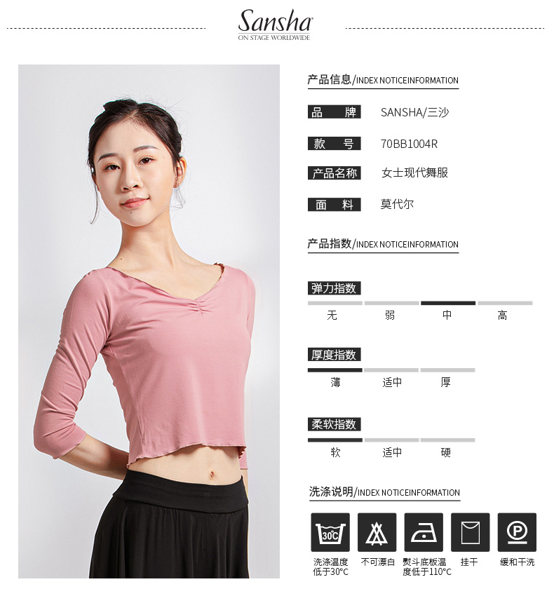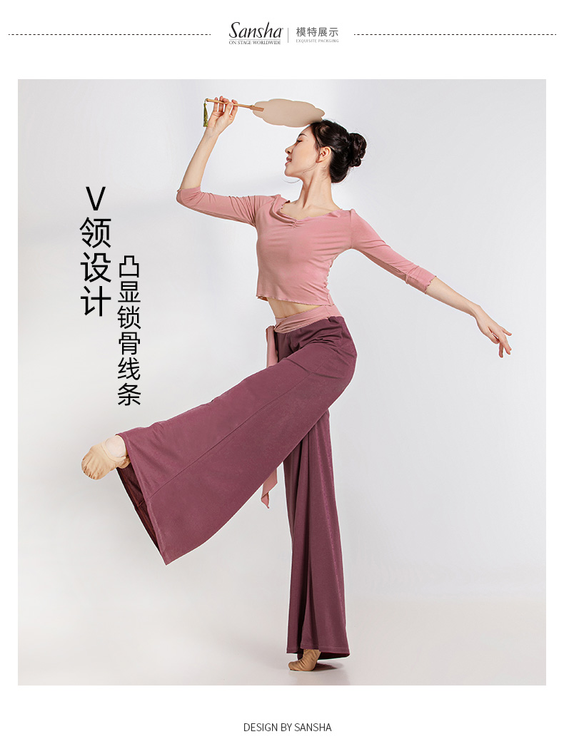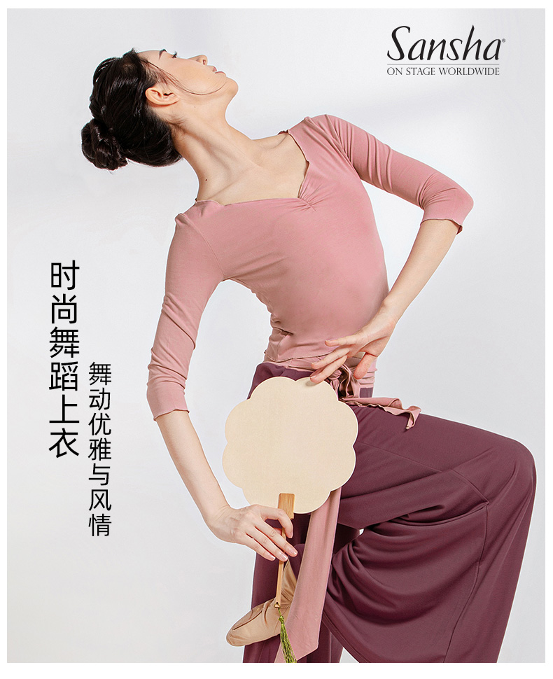 sansha 三沙七分袖现代舞服女 短款V领舞蹈上衣中国舞古典练功服