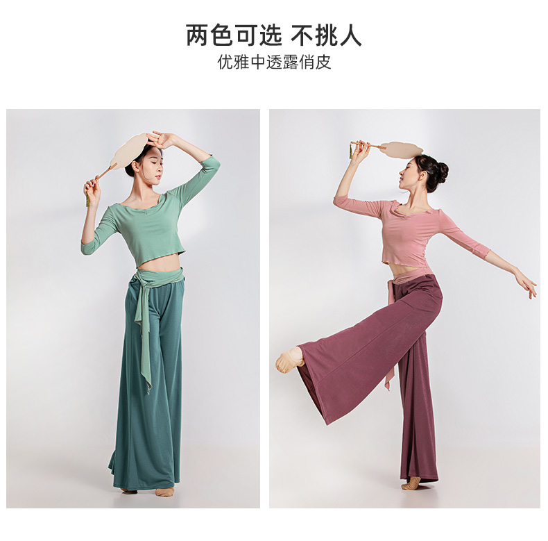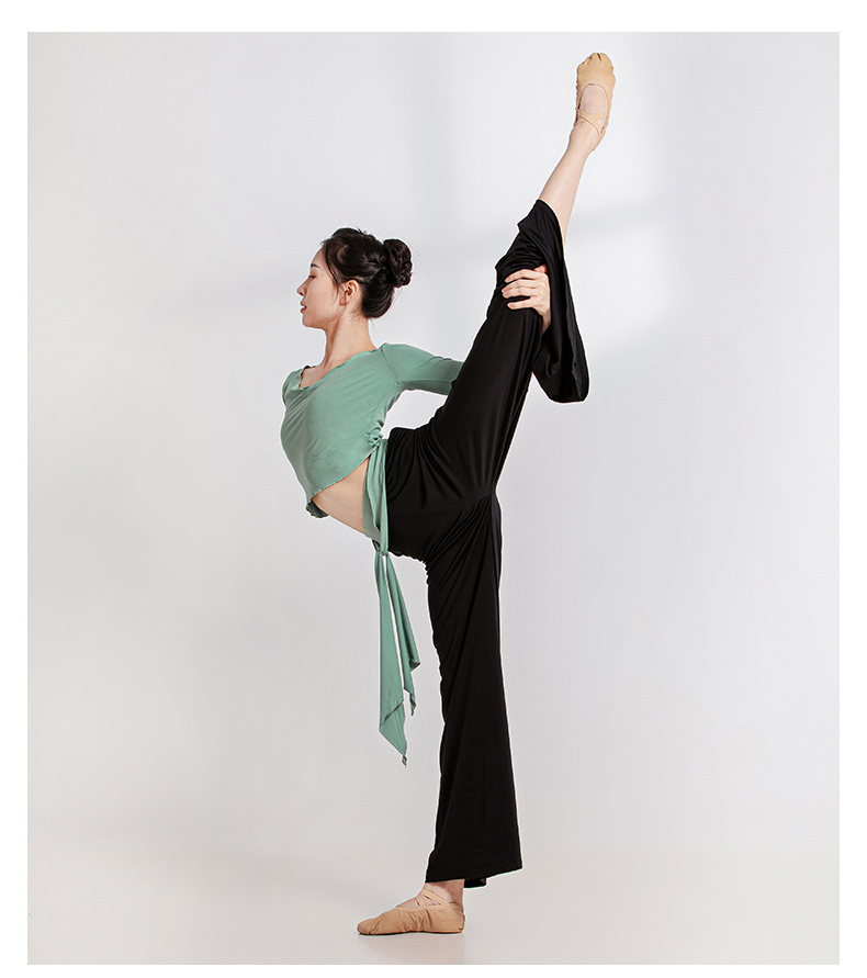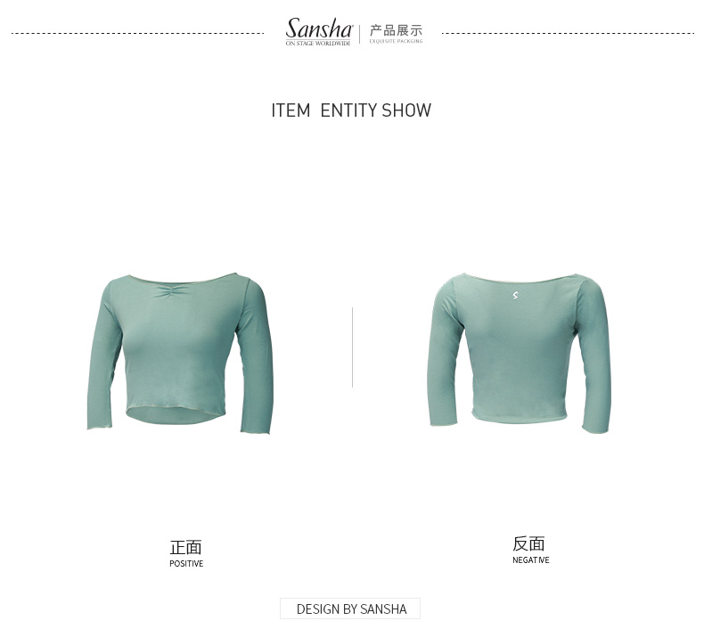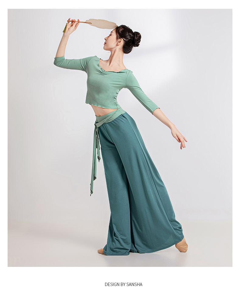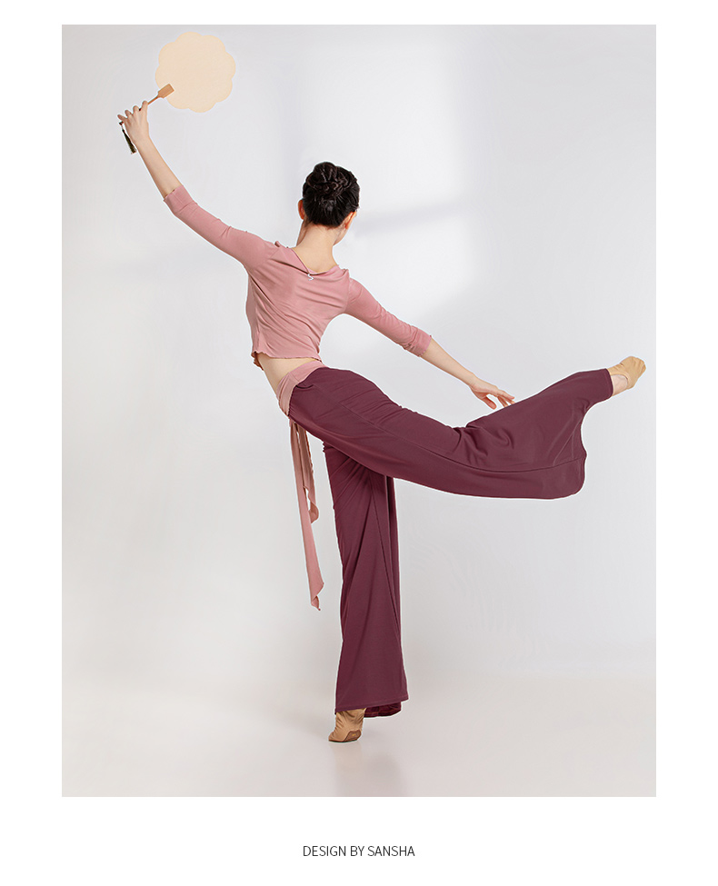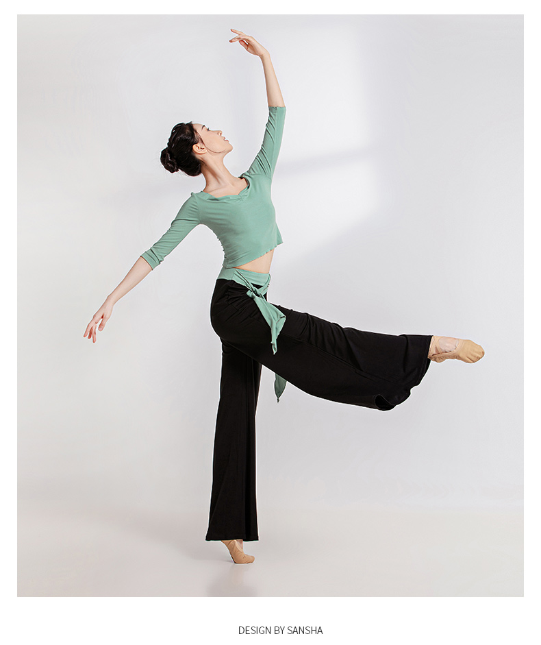 sansha 三沙七分袖现代舞服女 短款V领舞蹈上衣中国舞古典练功服