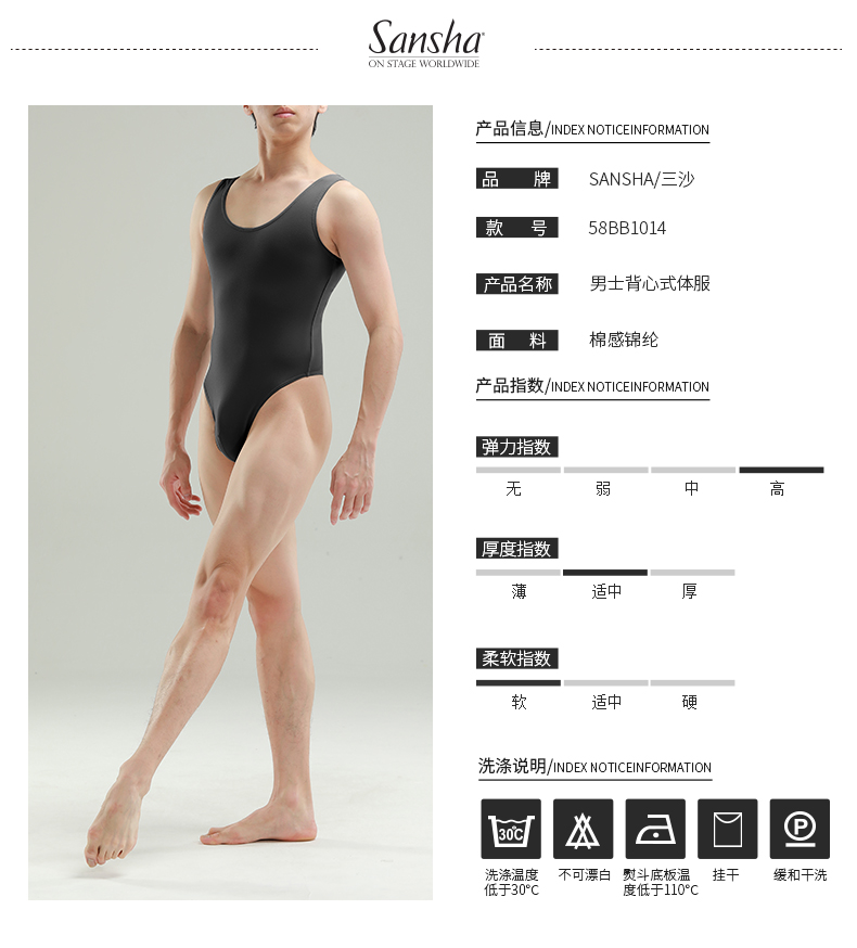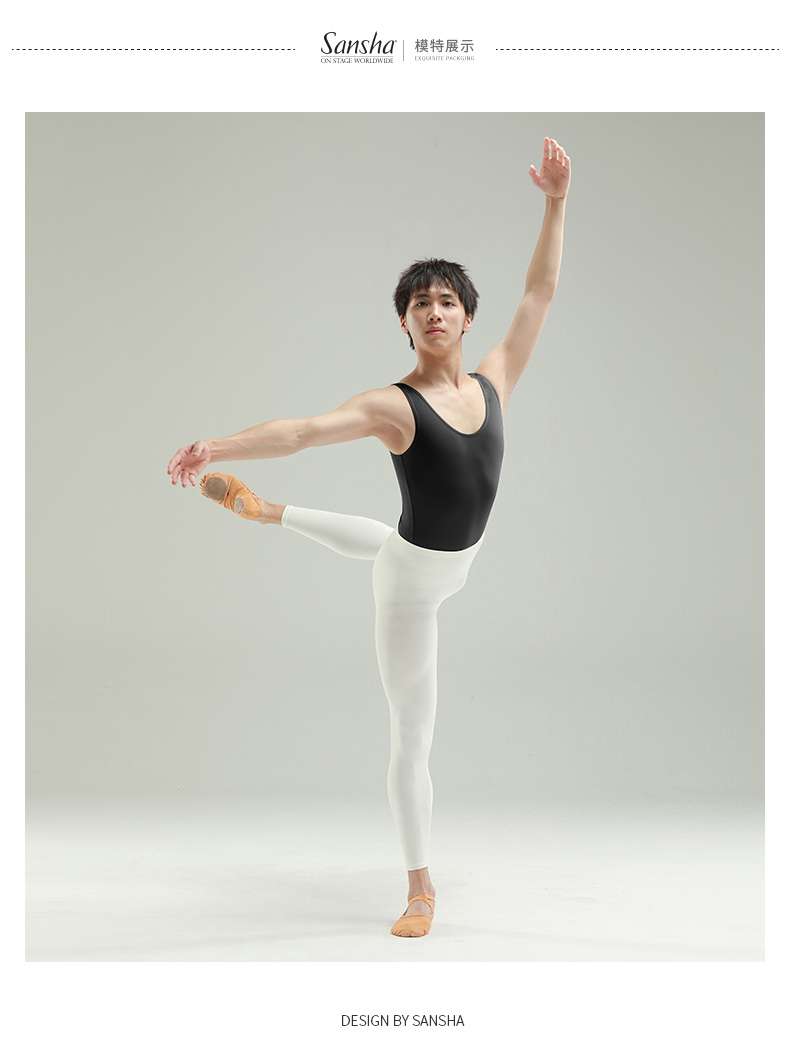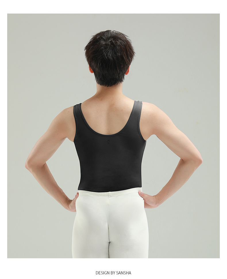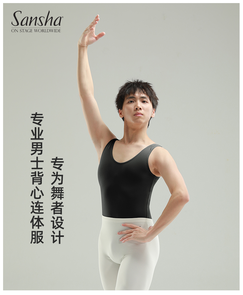 sansha 三沙男童舞蹈服 男士芭蕾舞连体服少年背心圆领练功服演出