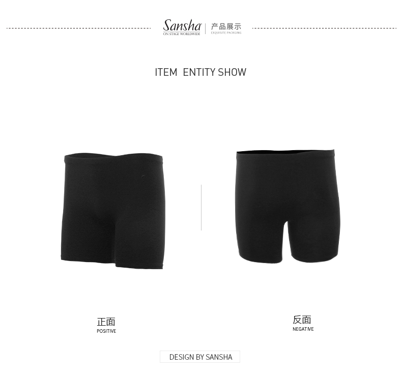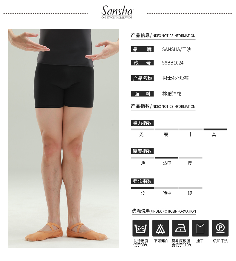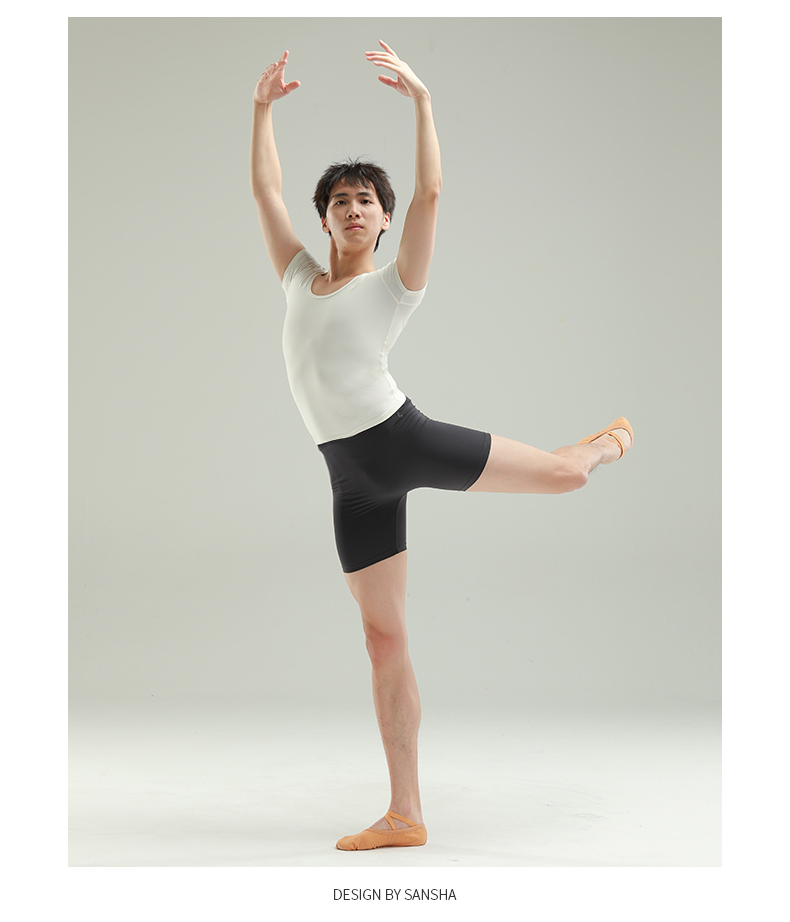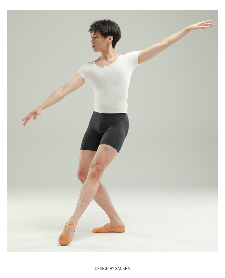 sansha 三沙男士舞蹈裤 哑光芭蕾舞短裤4分裤弹力紧身练功裤子