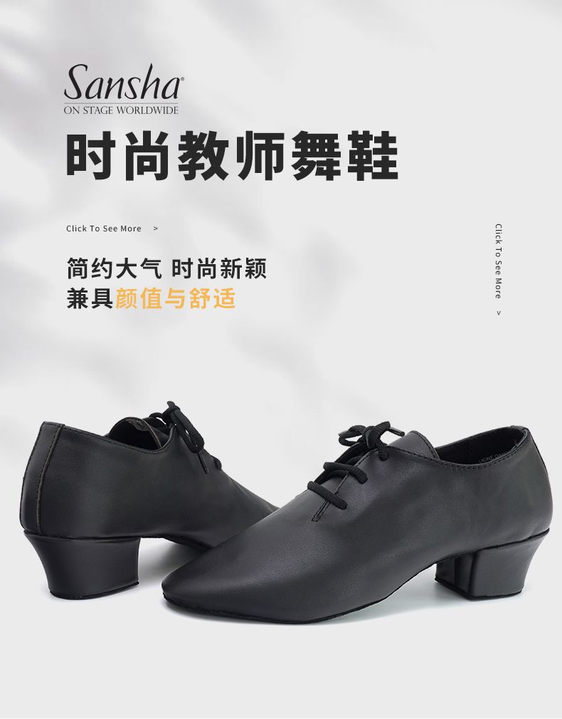 sansha 三沙芭蕾舞教师鞋 系带牛皮舞蹈鞋练功小皮鞋反绒皮底跳舞(定制7天)