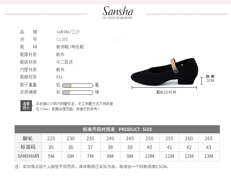 sansha 三沙舞蹈教师鞋 芭蕾舞民族肚皮舞练功鞋性格舞考试考级鞋(定制7天)
