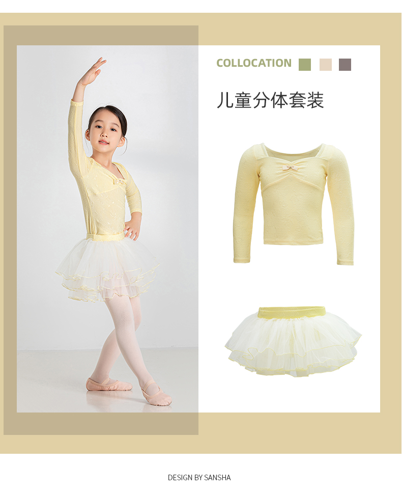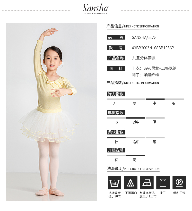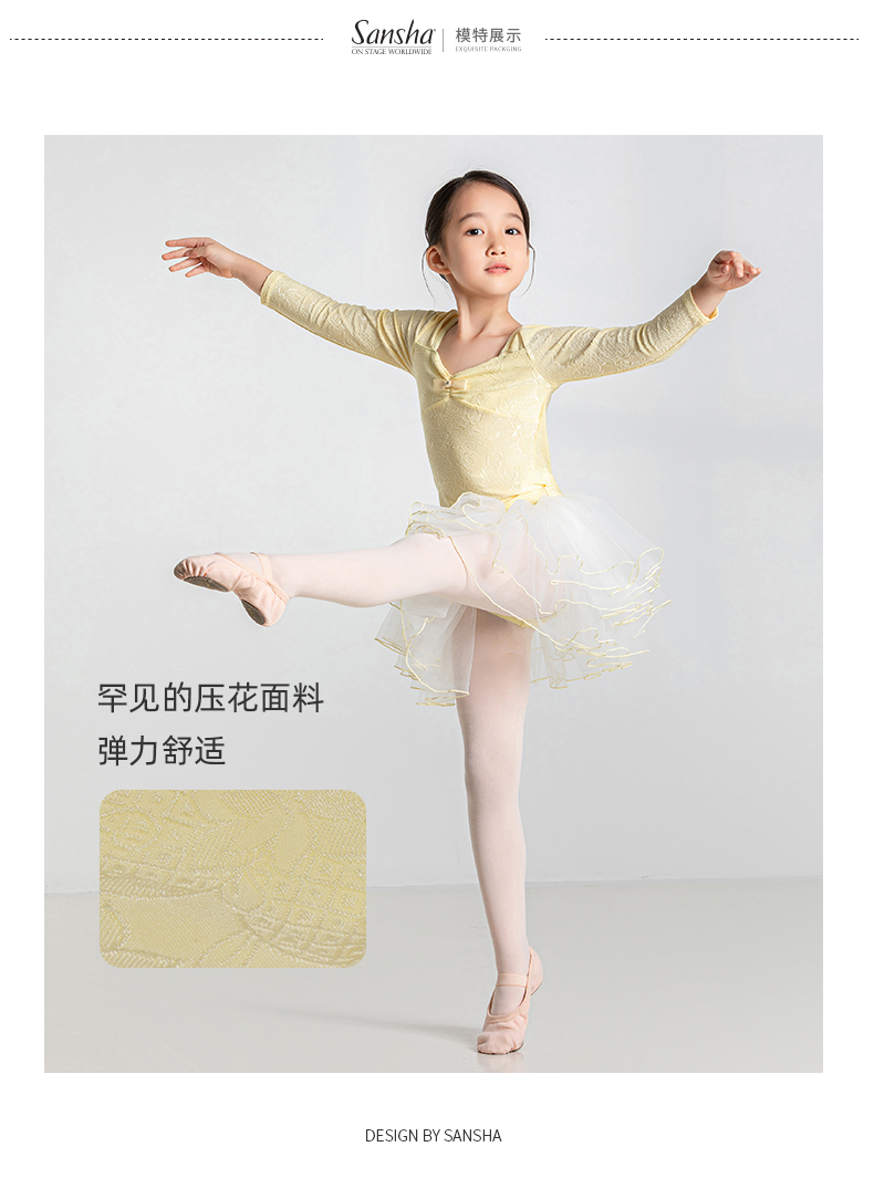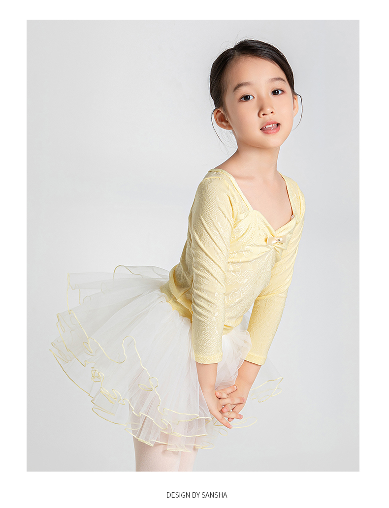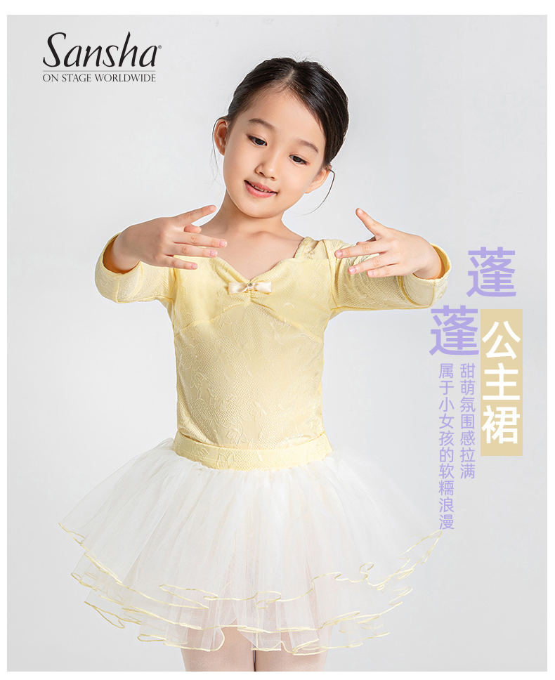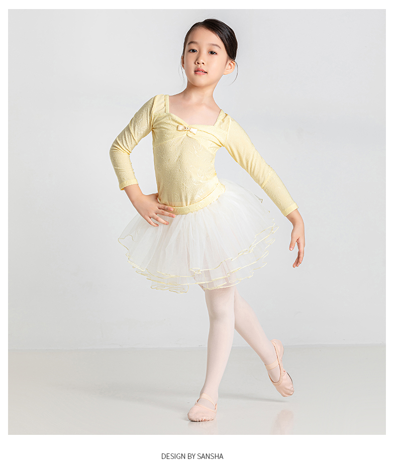 sansha 三沙儿童舞蹈服 长袖芭蕾舞服上衣蓬蓬裙分体套装秋冬跳舞