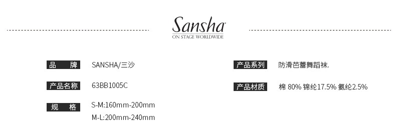 Sansha 三沙芭蕾舞蹈袜 儿童中筒袜棉防滑硅胶小腿女士儿童运动袜