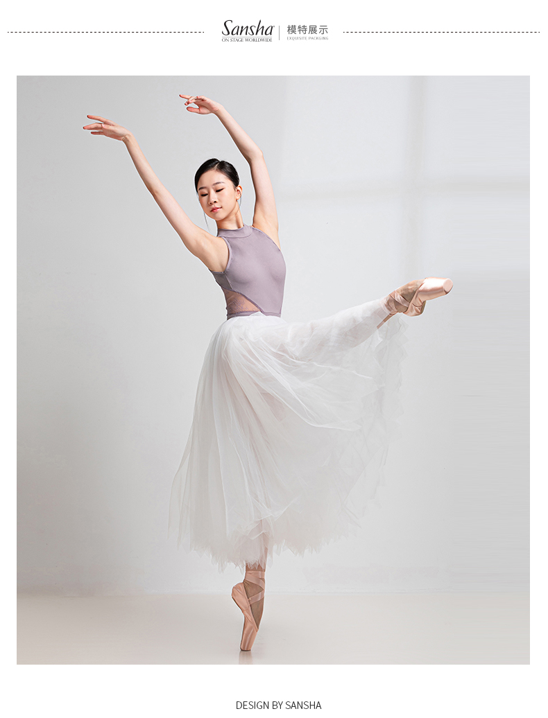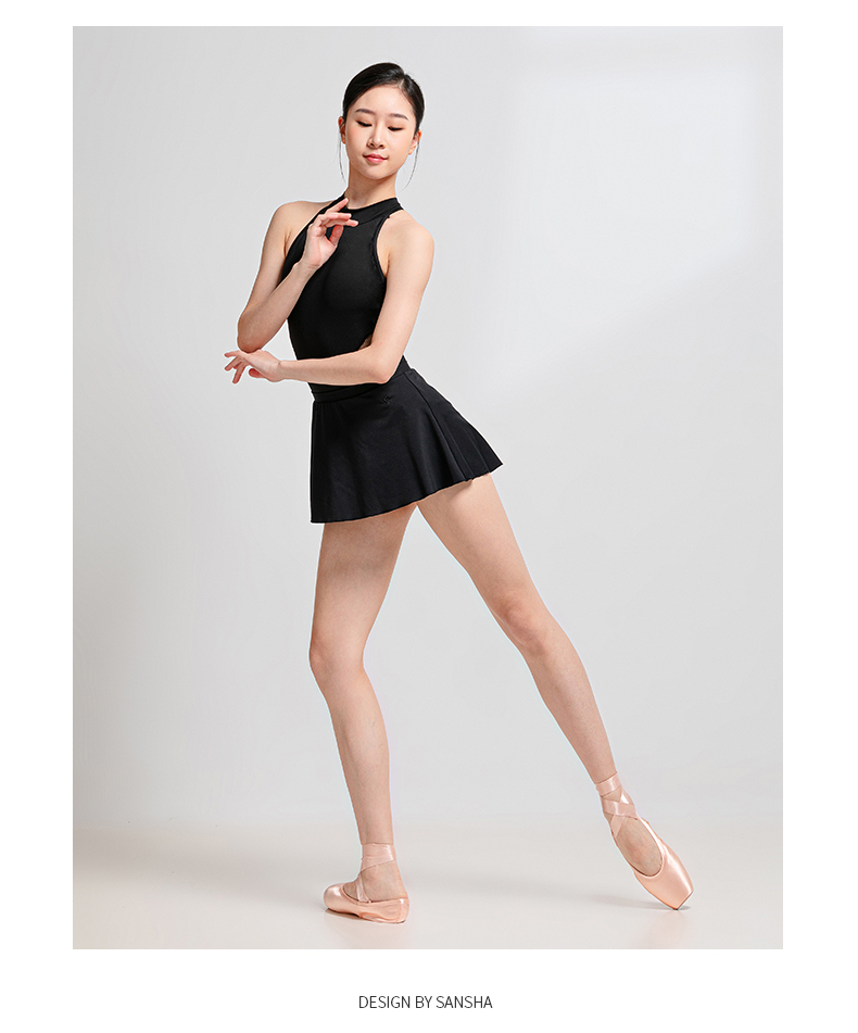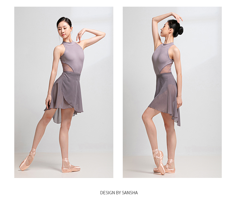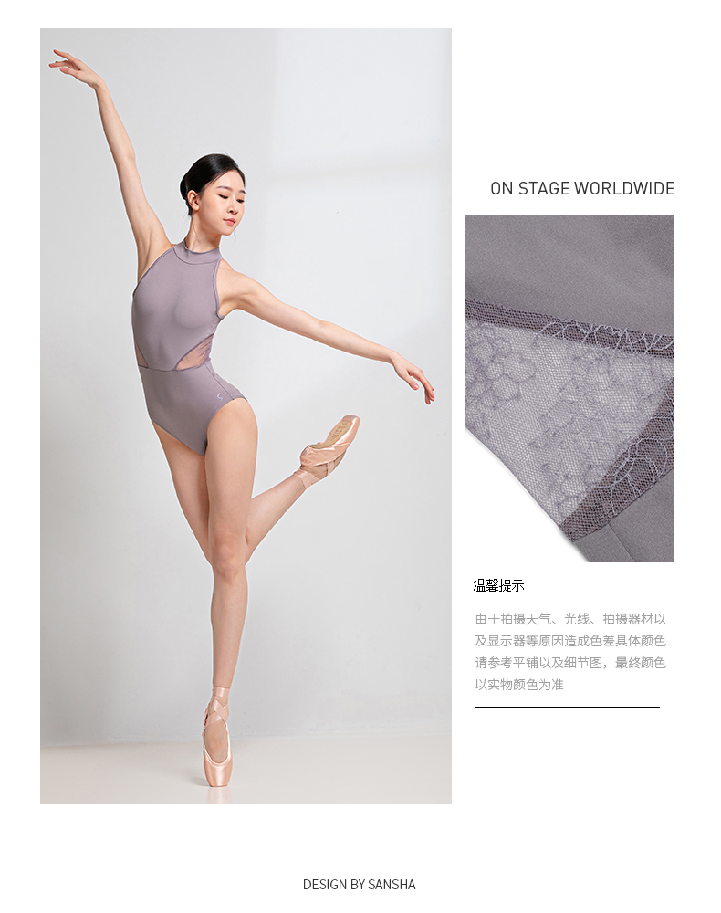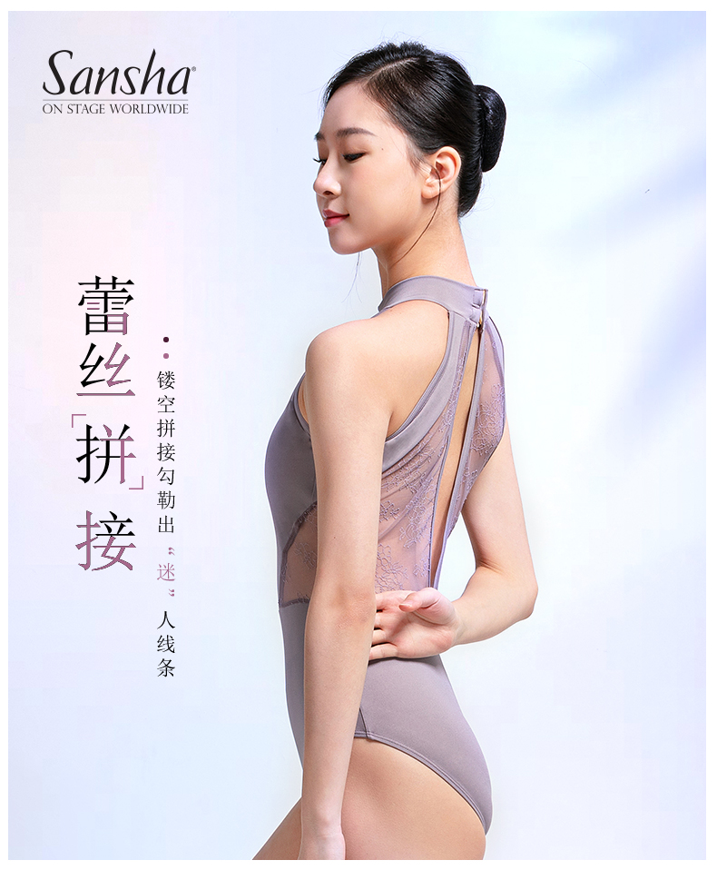 sansha 三沙芭蕾舞练功服 女成人挂脖舞蹈连体服蕾丝体操形体服